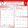 The Christian (Gregorian) calendar is used world-wide as the universal calendar for business, much like English is a universal business language. The Jewish and Islamic calendars are still in use today by members of those faiths and in certain countries. As a result, calendars combining one of these with the Gregorian calendar are readily available, but this calendar combines all three so we can all use the same one.