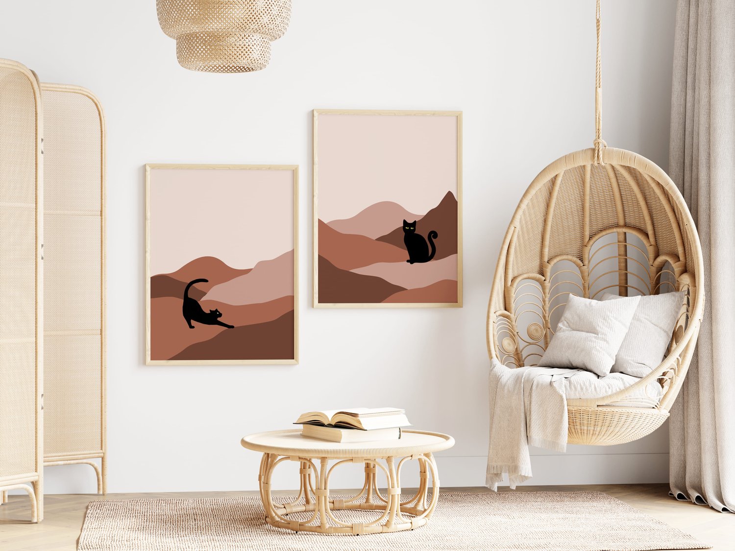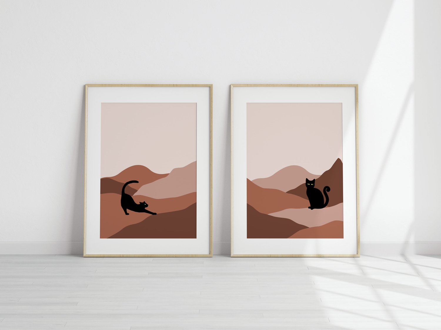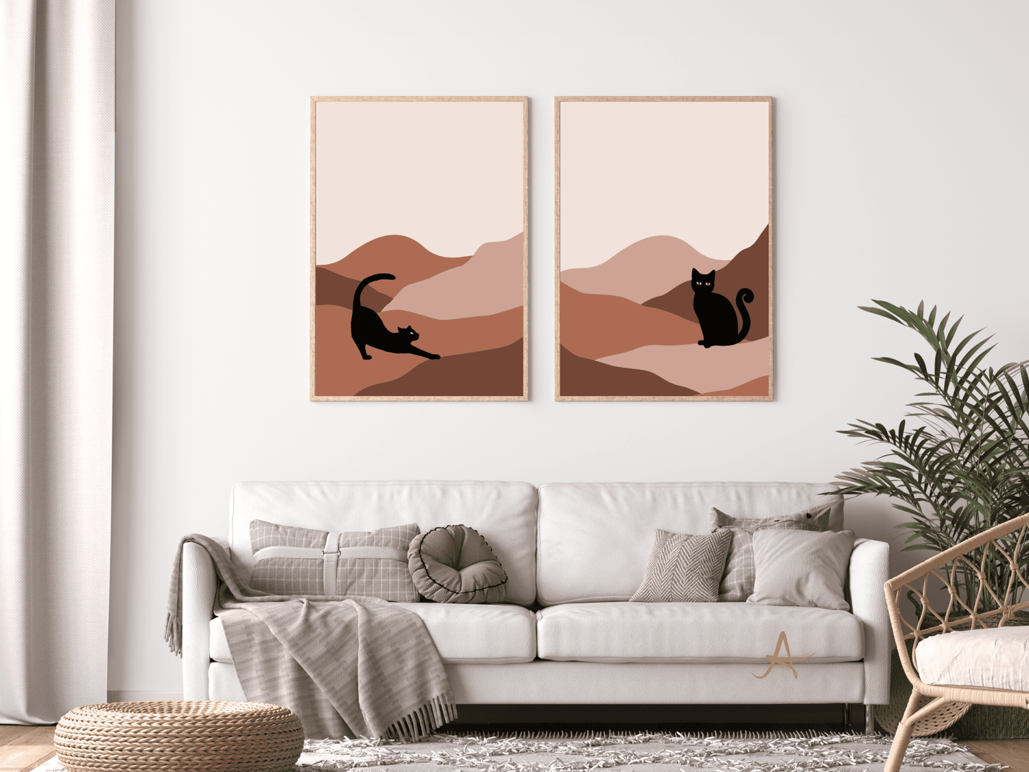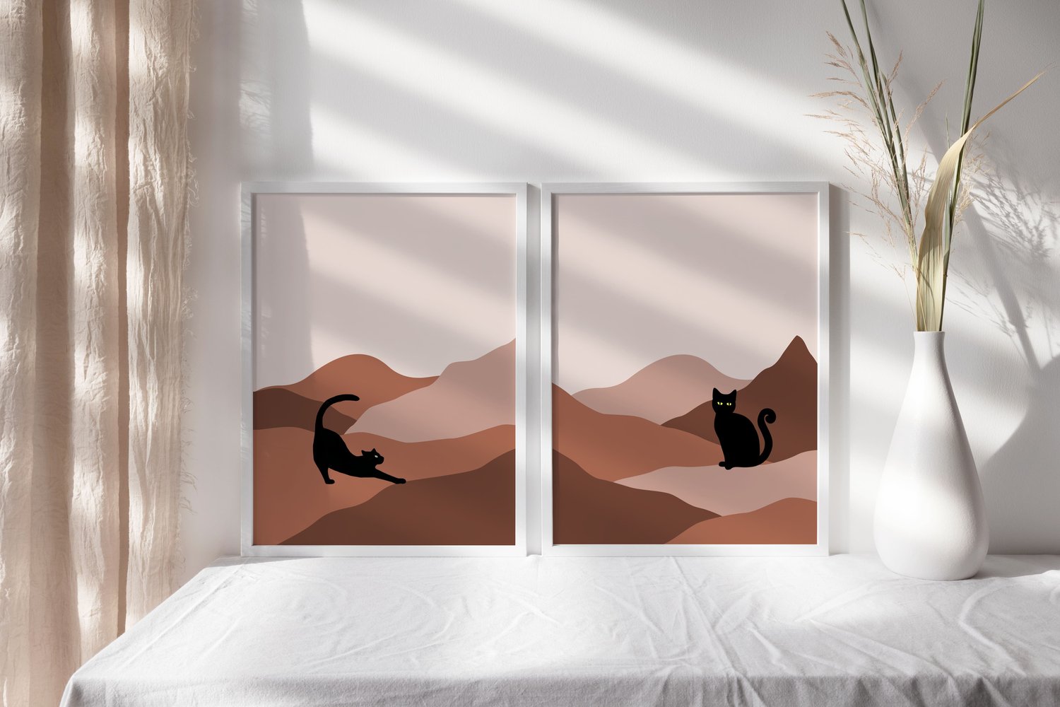 Set of 2 Bohemian Cat Landscape Printable Wall Art Poster