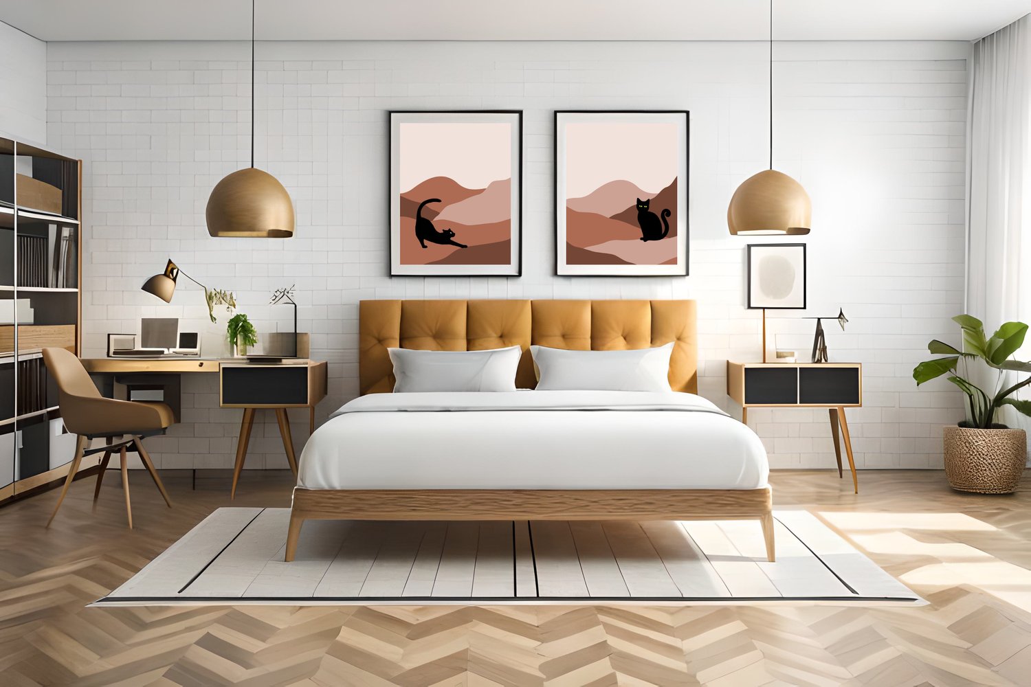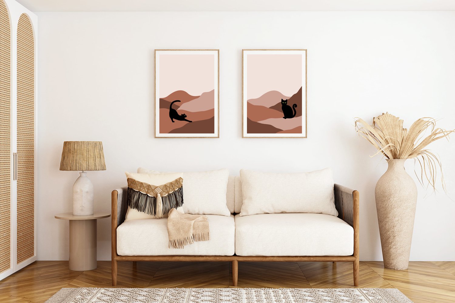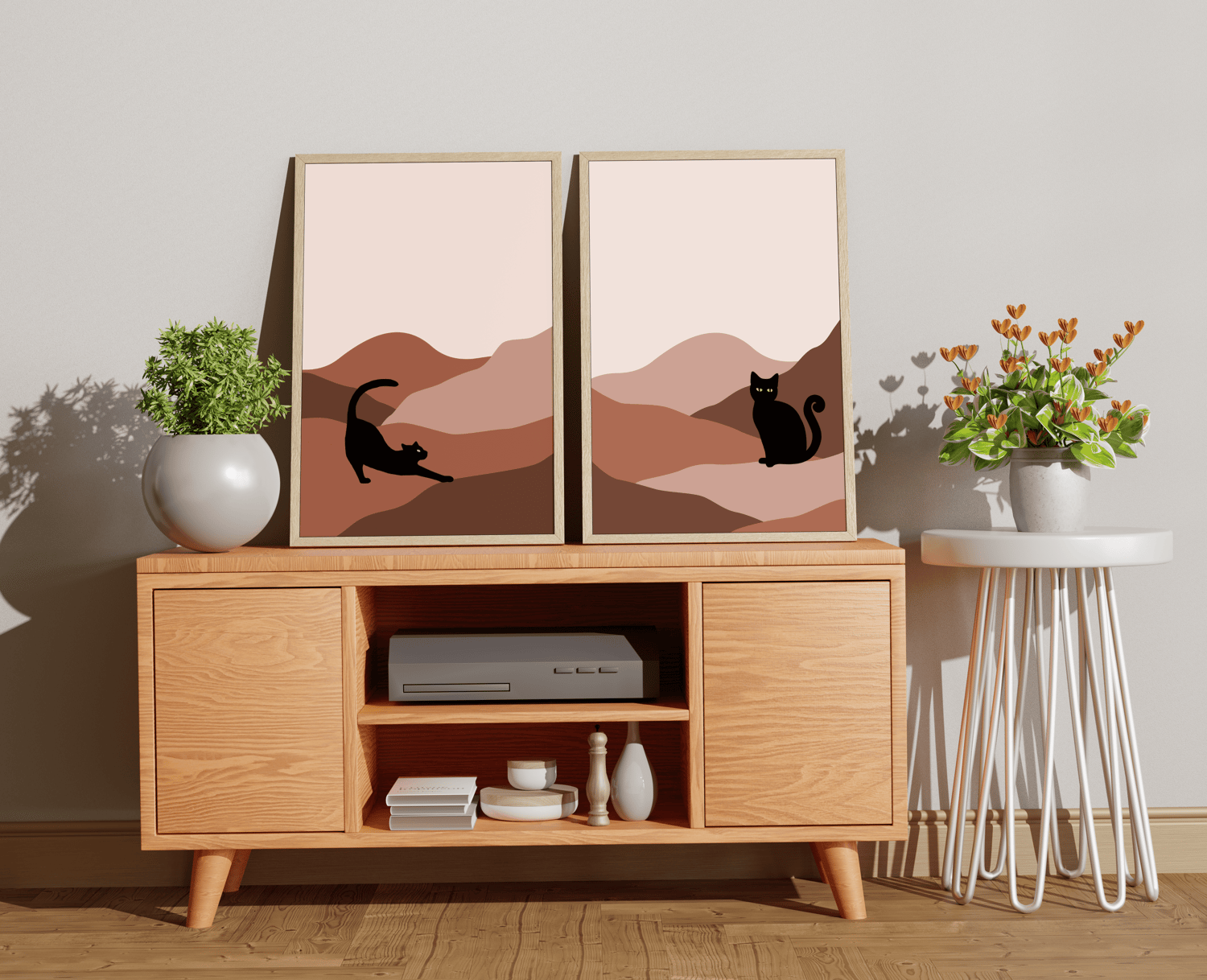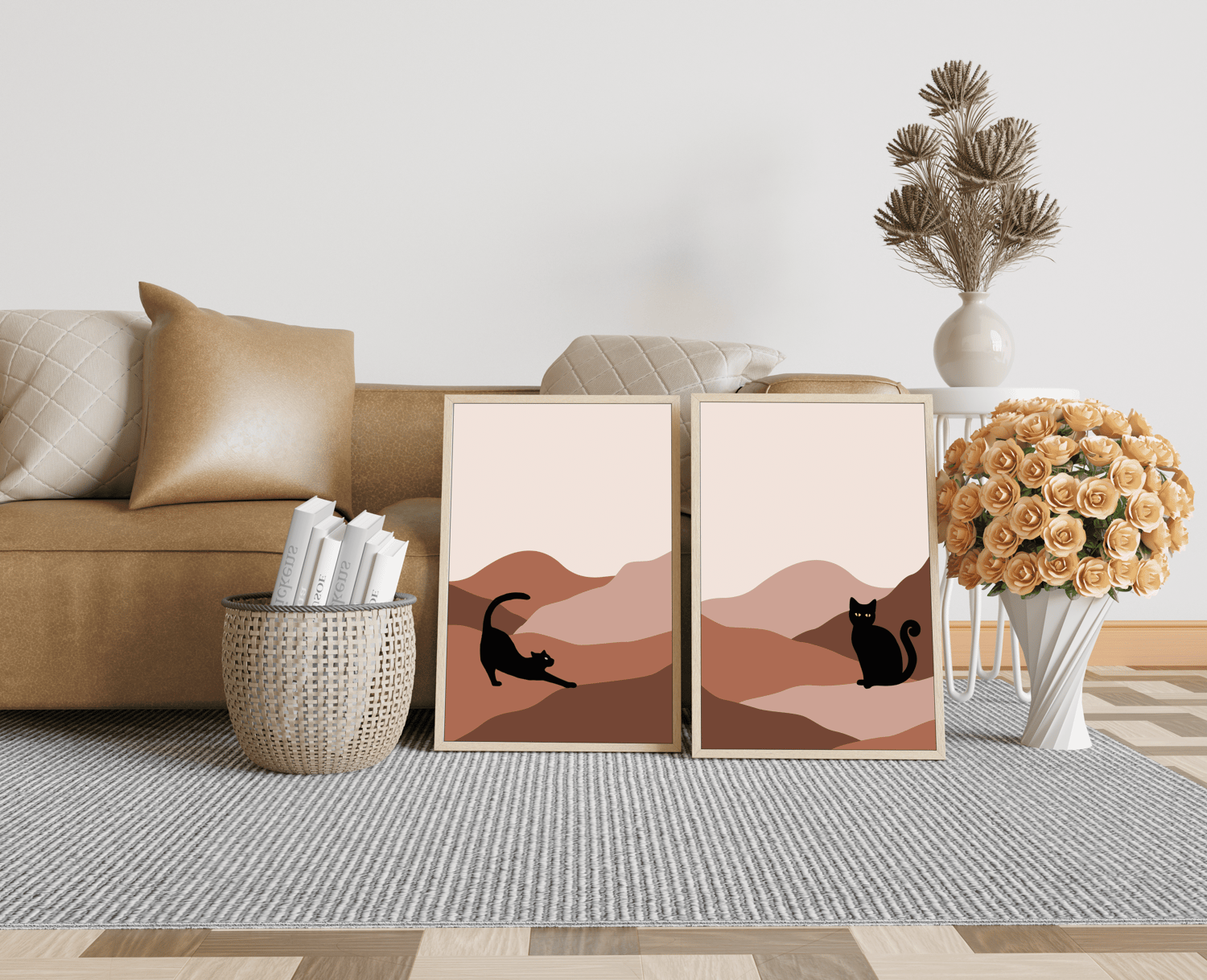 Set of 2 Bohemian Cat Landscape Printable Wall Art Poster