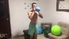 New Model Ricardo blows up a big balloon until it burst and then he plays and pops the rest by sitting and with his hands. At the end he shows up his muscles! It is a 7 minutes long video.