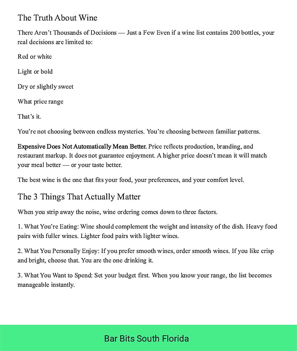 Wine Lists Decoded is your practical, no-fluff guide to ordering wine at restaurants with calm, quiet confidence.