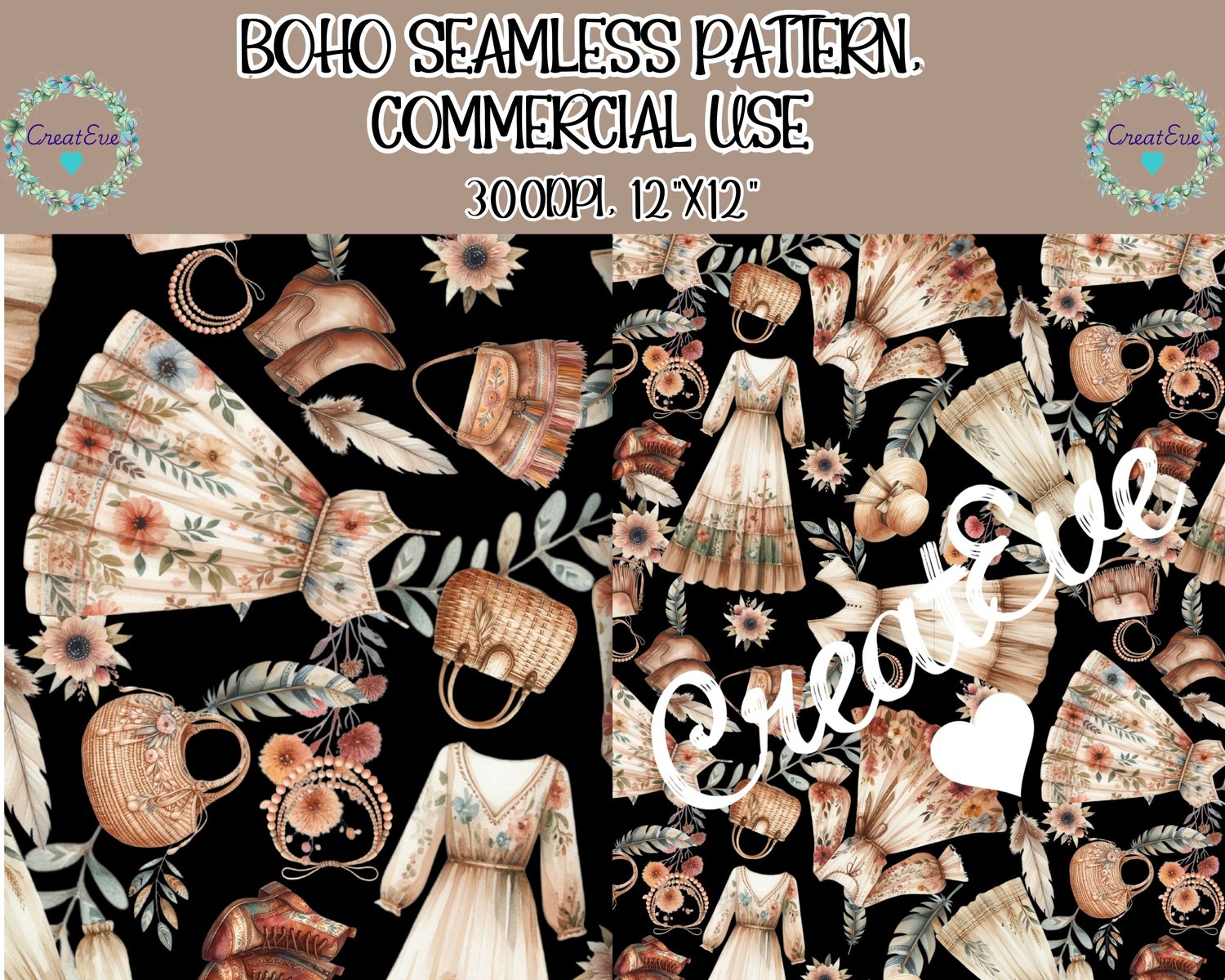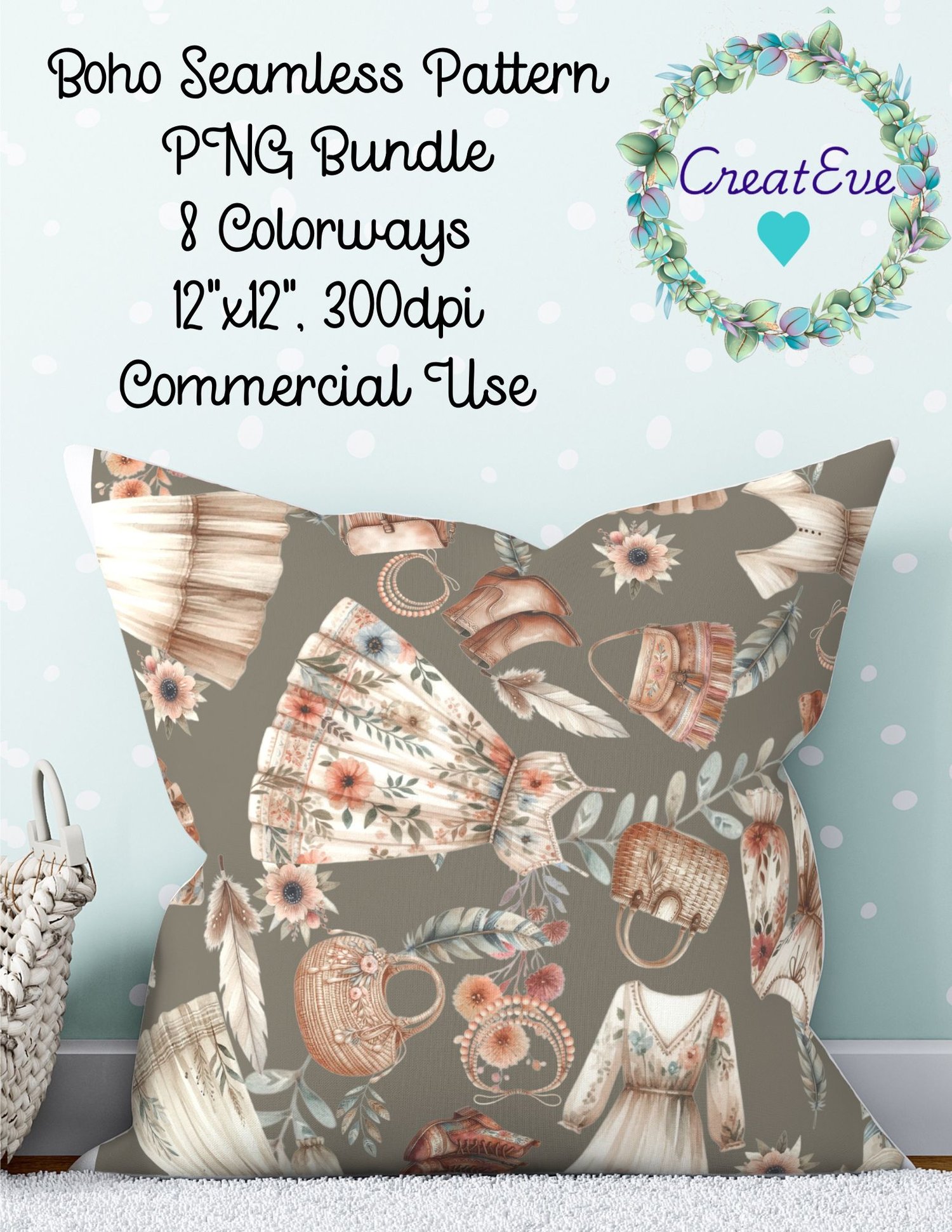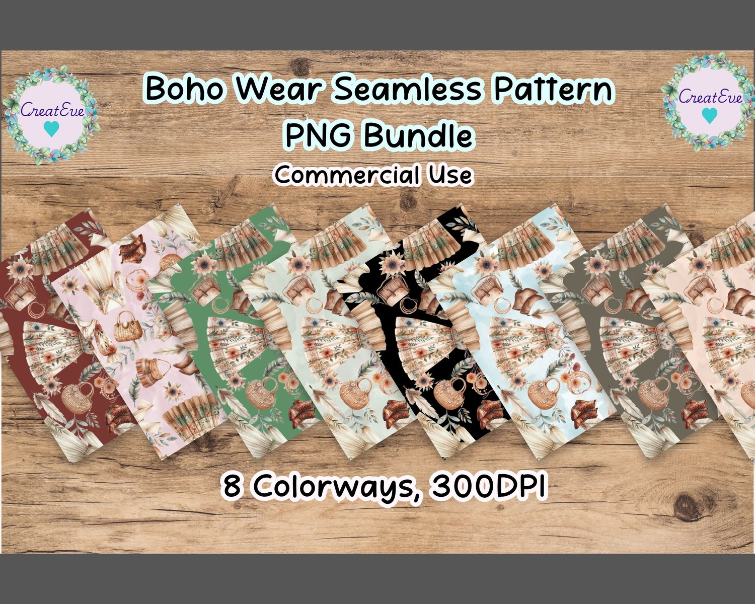 Boho Wear Seamless Pattern 8 Colorway PNG Bundle