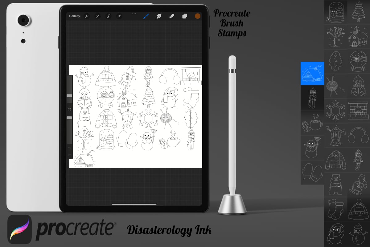 Christmas Winter Elements Procreate Brush Stamps Set 1, 25 Christmas Stamps