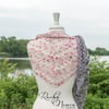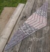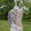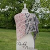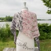 The shawl starts at one end and increases downwards towards the center. It then decreases back to the other end to create a symmetrical triangle that is wide and shallow. The pattern is fully adjustable and includes instructions for making the shawl larger/smaller and adjusting the colors in any way. It's a practical, versatile piece - let it drape as a shawl, or wrap it around your neck as a scarf. It's cozy enough to add warmth, but lacy and lightweight so it's not too heavy.