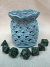 The size is completely customizable, so you know you’ll have space for all those dice, or whatever little treasures you have. Repeating round 5 will make the bottom wider; repeating rows 10 and 11 will make the body taller.