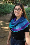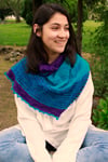 It is a bias triangle shawl for two contrast colors yarns. A feminine and fancy accessory especially for autumn or spring. I recommend a semisolid contrast yarn, dark and light.