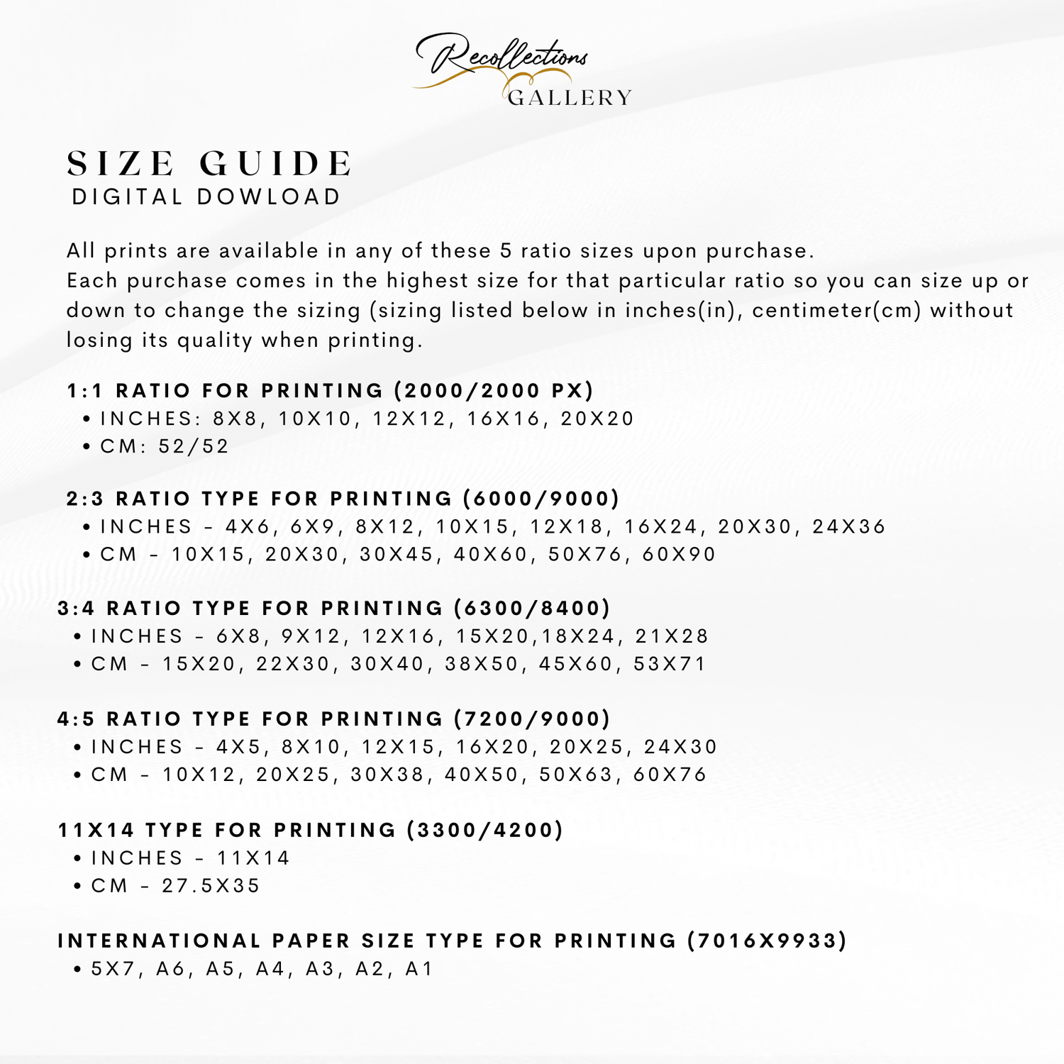 - 4:5 ratio file for printing files sizes: 4”x5”, 8”x10”, 12”x15”, 16”x20”