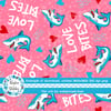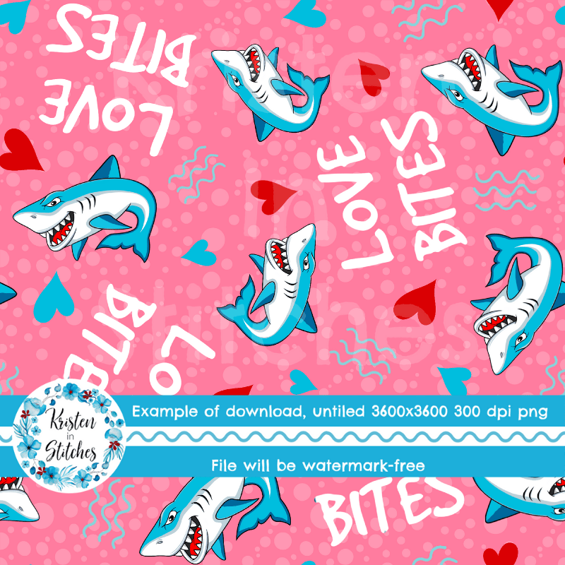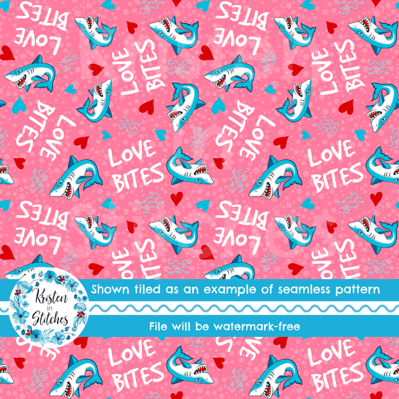 Love Bites Sassy Anti Valentine Sharks Seamless Pattern, Pink