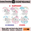 baby elephant embroidery design bundle, elephant machine embroidery design, pattern, file, embroidery, butterfly,umbrella, trendy embroidery