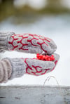 These decorative mittens will keep your fingers warm during the winter. The pattern combining stranded knitting and simple cables gives a big effect with little effort.