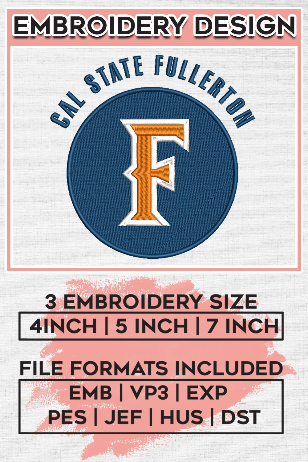 Cal State Fullerton Titans Logo Machine Embroidery Designs, Ncaa Logo Embroidery Files, California State University, Fullerton Logo Embroidery Design, NCAA CSUF Titans Machine Embroidery Design, Digital Download