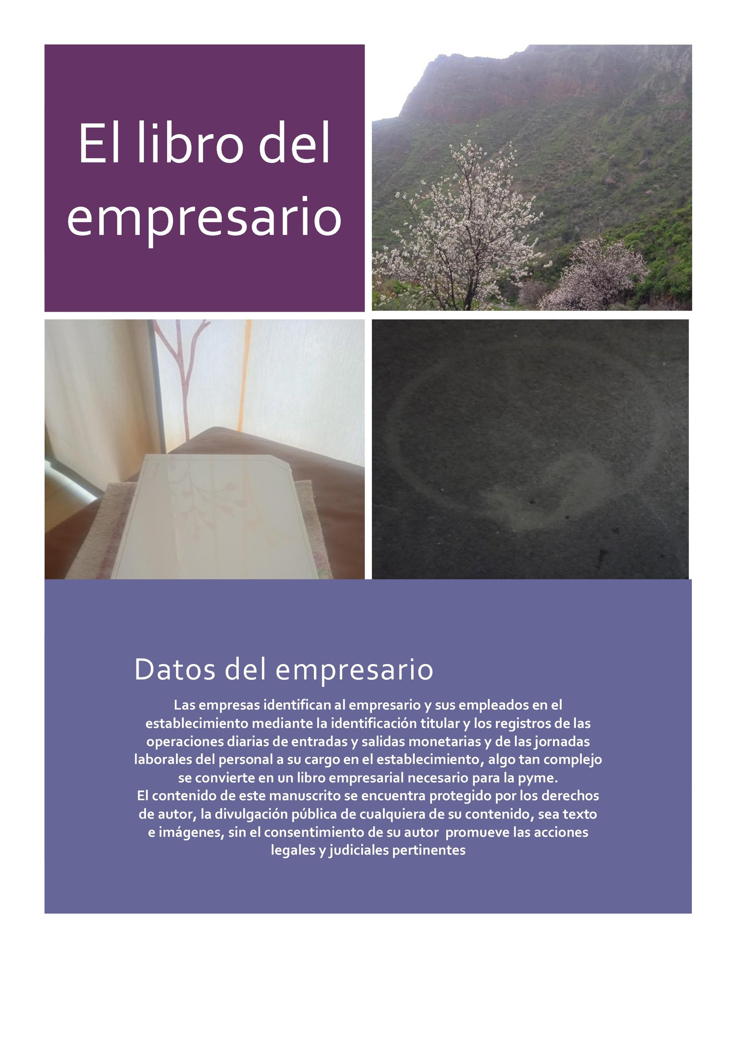 El libro del empresario empieza por identificar su empresa, registrar las operaciones diarias de su negocio con las entradas y salidas monetarias y de su personal a cargo, y que mejor que en su propio libro con capacidad anual de registrar las transacciones todos los dias del año, que mejor, que en su propio libro electrónico