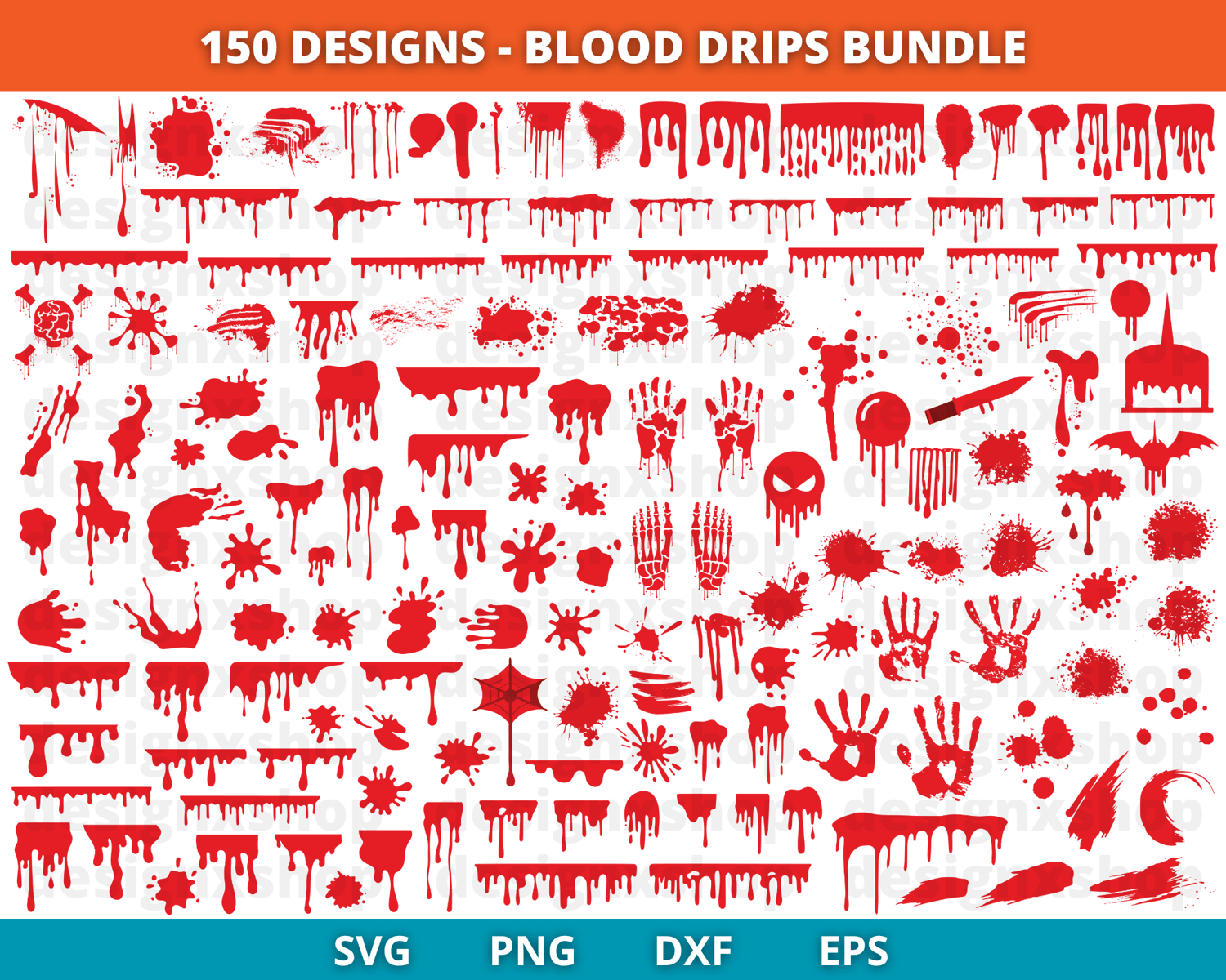 Blood Drips SVG PNG Mega Bundle, Dripping Blood SVG, Blood svg, Halloween svg Bundle, Bloody Hand svg, Blood splatter svg