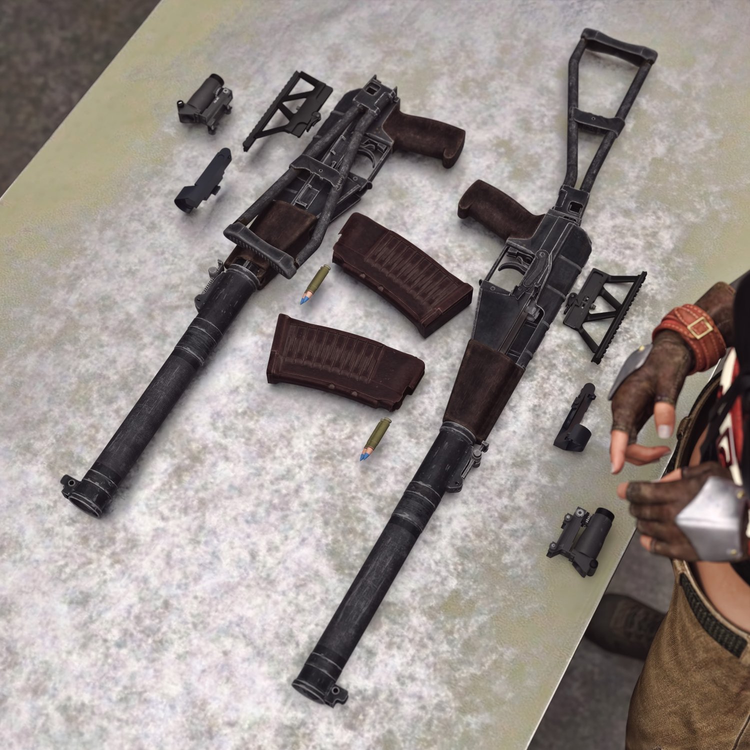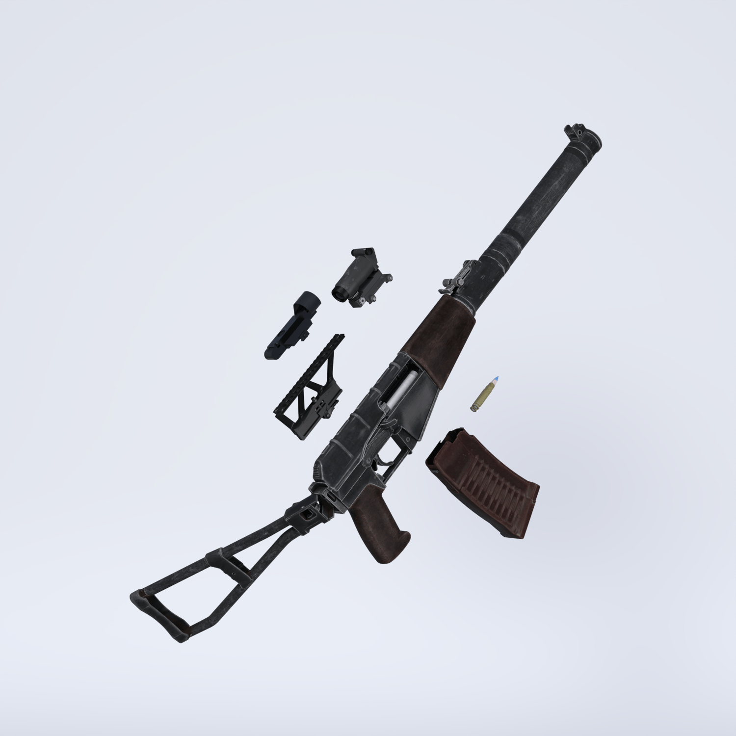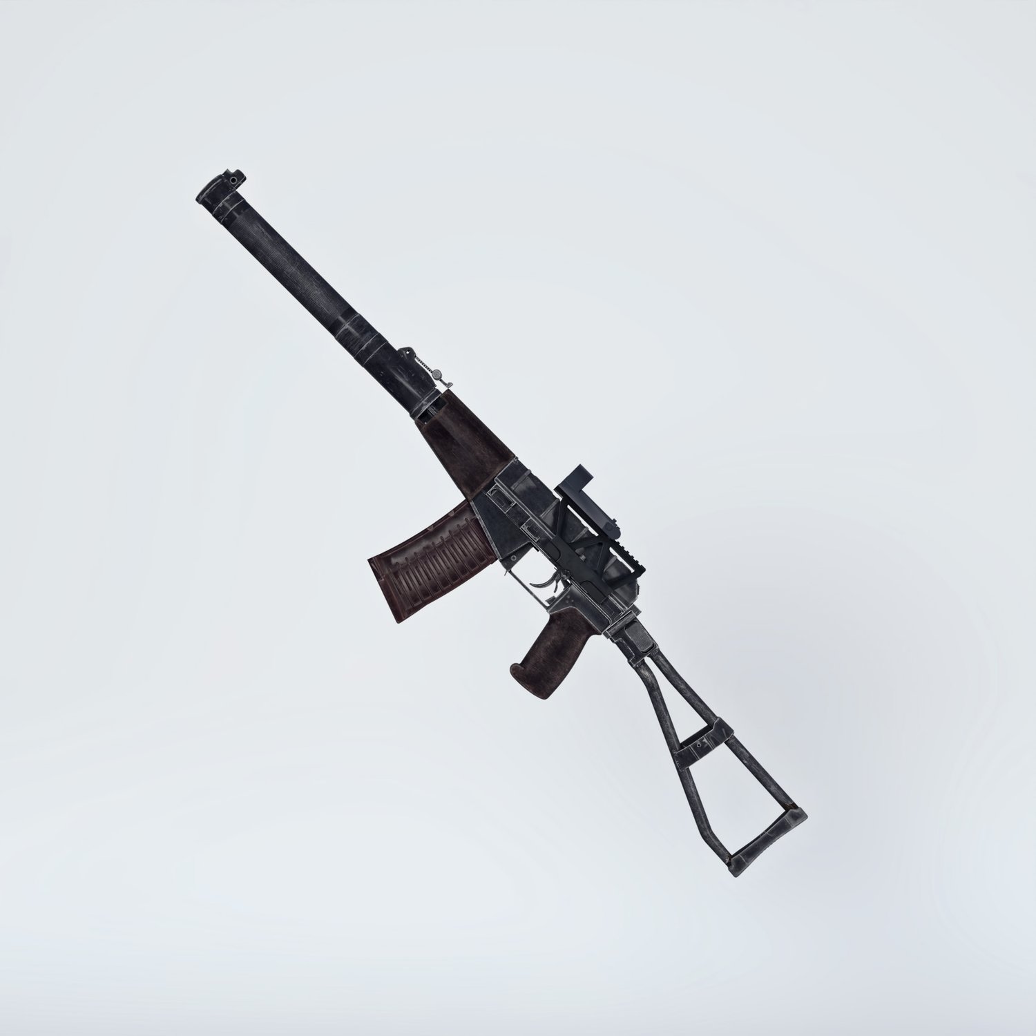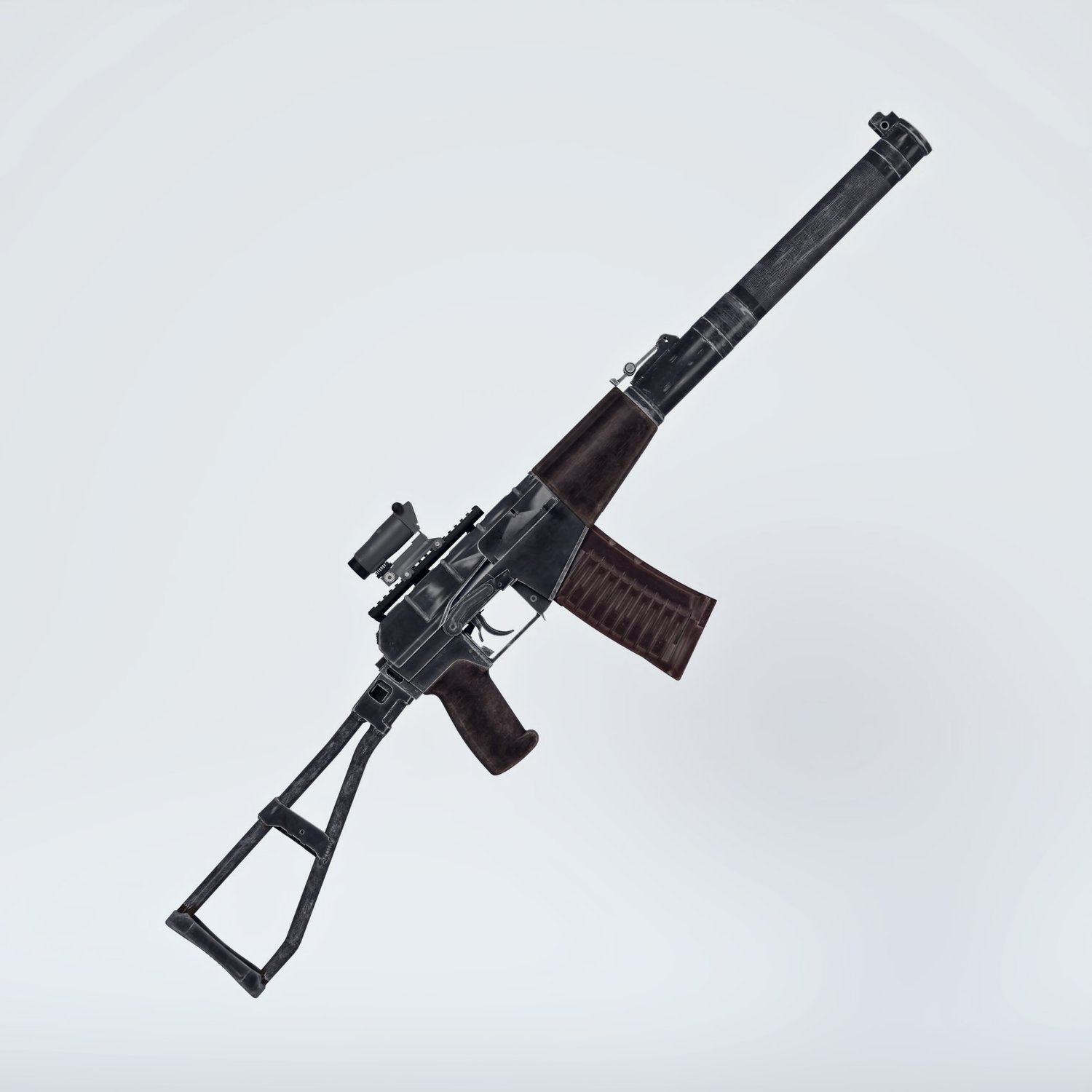 One of the most famous and good-looking guns of Soviet 80s. A silenced short range assault rifle designed and manufactured for special operations. Capable of firing silenced automatic fire, which makes it silent but deadly :D Includes optics and red dot sight for various applications. Can be also used without special sights. The model converted and rigged for use in Daz. Trigger, safety, bolt, optical sight etc also rigged for more realistic pictures.