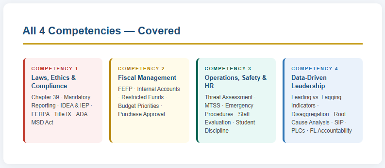 Subtest 1 doesn't test whether you're a good principal. It tests whether you know what Florida law and protocol require โ and whether you can apply it in a multiple-choice format in 90 minutes.