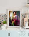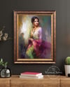 Very colorful yet not overpowering, figurative painting of Indian Girl in Saree, Elegant Painting.