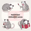 Opossum Valentine Clipart Set – Cute Possum PNG Bundle (8 Hand-Drawn PNGs)