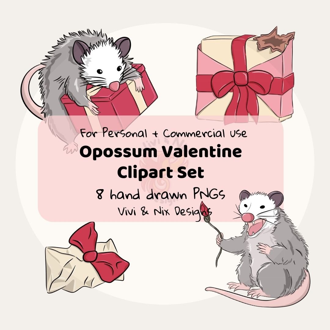 Add a fun and charming twist to your Valentine projects with this Opossum Valentine Clipart Set!