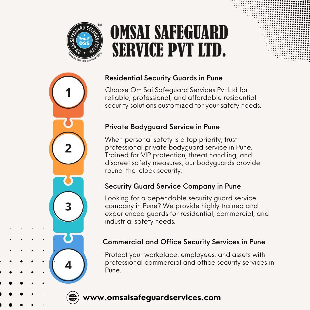 When personal safety is a top priority, trust professional private bodyguard service in Pune. Trained for VIP protection, threat handling, and discreet safety measures, our bodyguards provide round-the-clock security. Whether for business leaders, celebrities, or individuals needing personal protection, Om Sai Safeguard Services Pvt Ltd ensures unmatched reliability, confidentiality, and safety for your peace of mind.