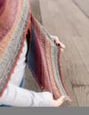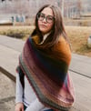 This shawl is all about texture! From the squish of garter and making the traditional Miniature Leaf Lace Stitch more contemporary. When it comes to yarn, I say go wild! It is knit flat, top down, with increasing along both edges and middle to create a triangle. You will then transfer into a lace section while continuing to stripe before you completely change colors.