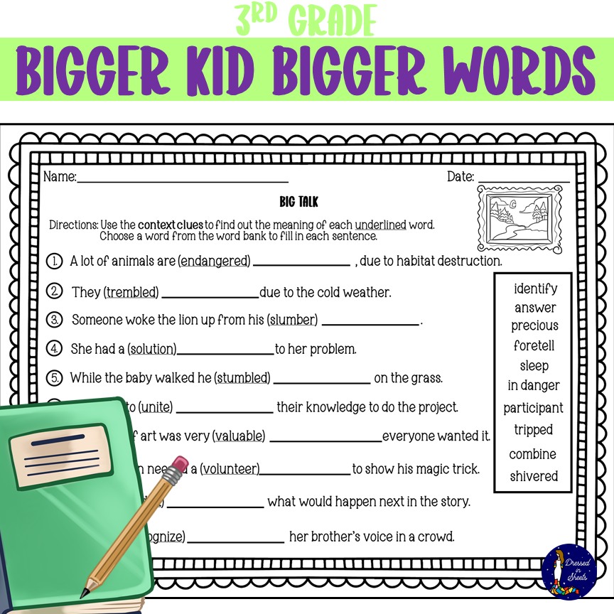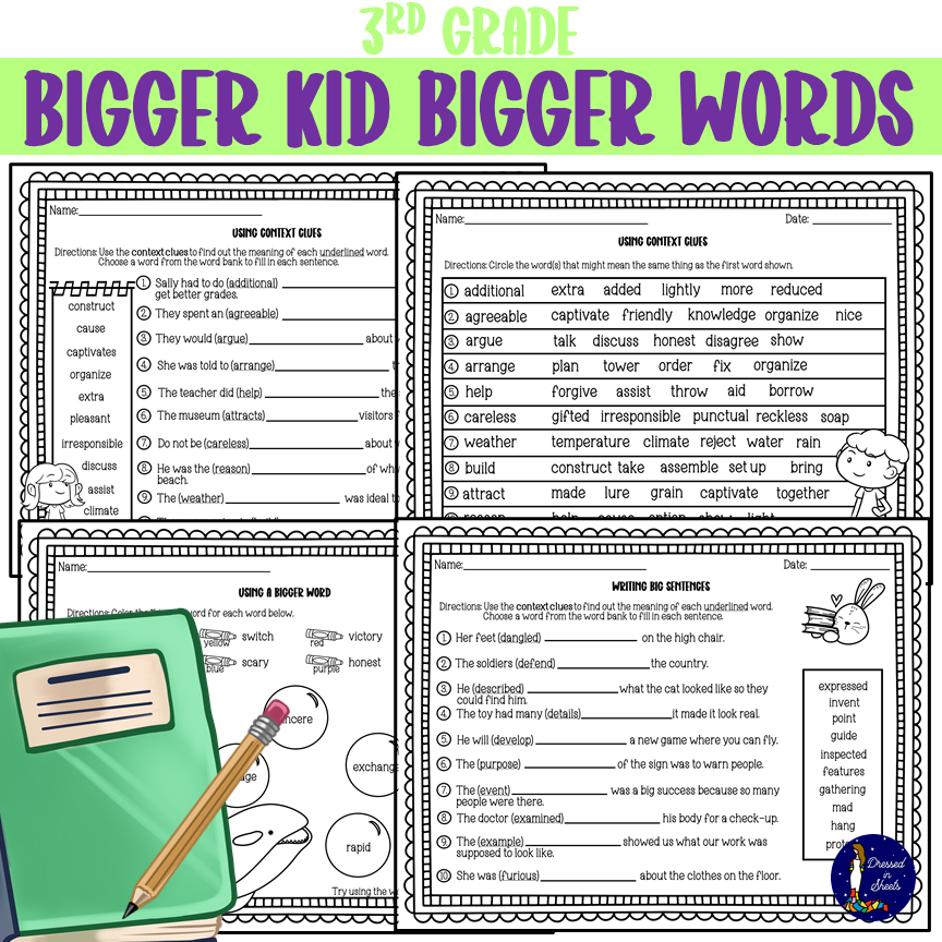 By the end of the year, third graders should demonstrate an understanding of text and word meaning, integrate knowledge and ideas, and read and comprehend literature. In order to do that, we must encourage children to use BIGGER words in their vocabulary.
