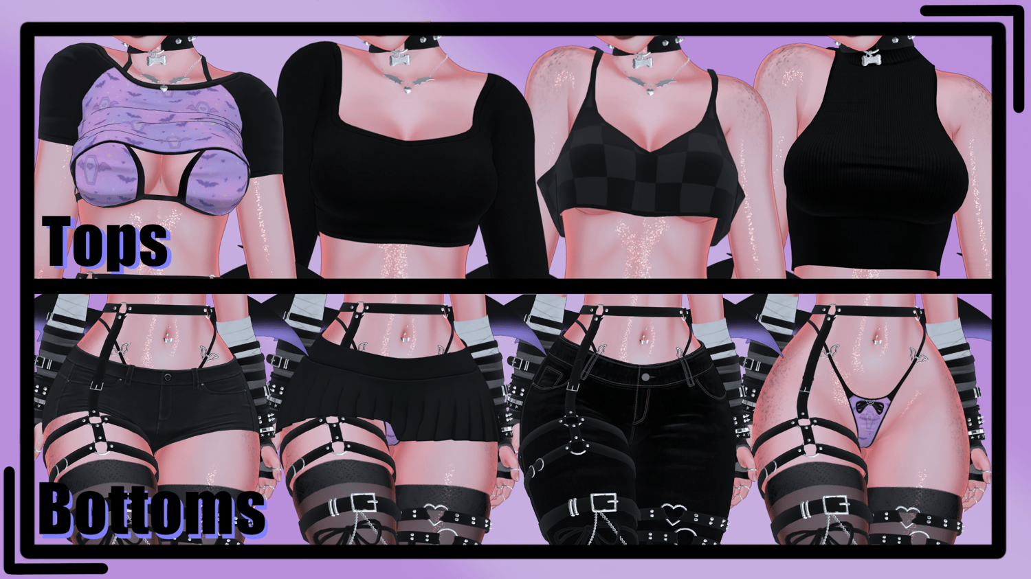 ♡ | Toggles: Bat Crop Top, Bra, Turtleneck, Loose Tank, Long Sleeve, Shorts, Jeans, Skirt, Panty, Goth Boots, Converse, Heels, No shoes, Cardigan, Crop Hoodie, Short Hair, Ponytail, Long Hair with/without bangs, Puppy Ears, Dog Ears, Puppy Tail, Dog Tail, Elf Ears, Horns, Wings |