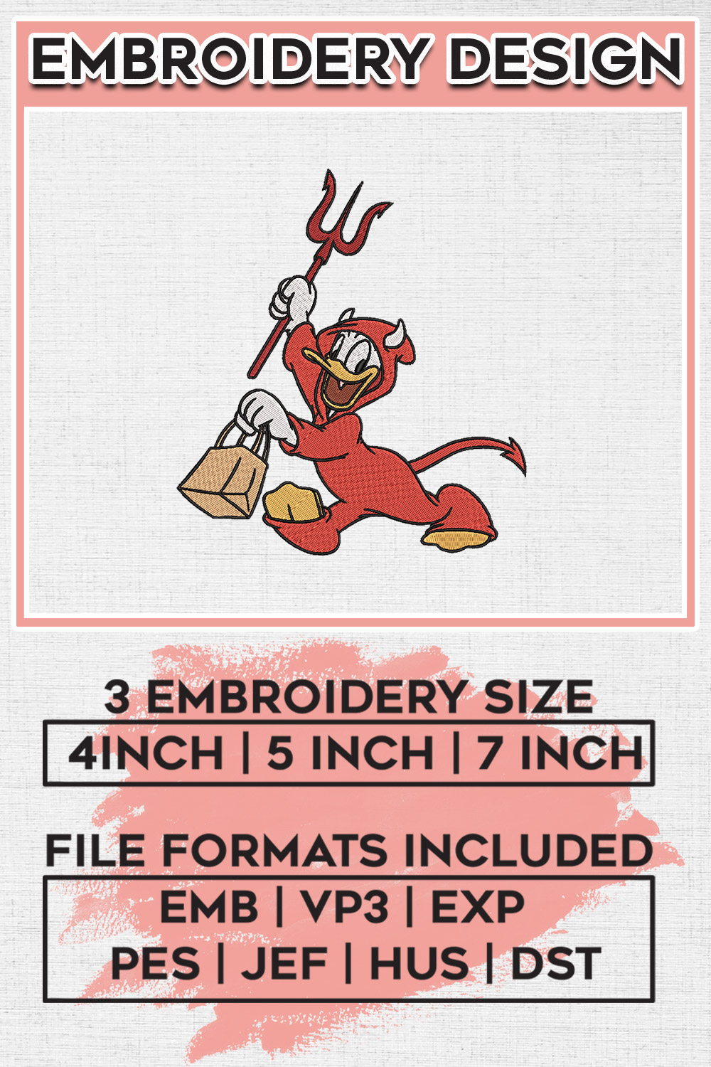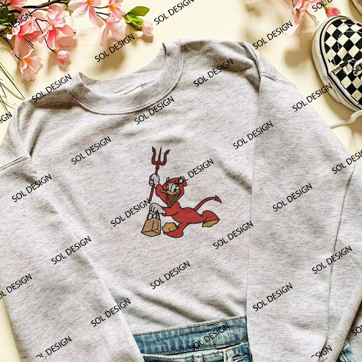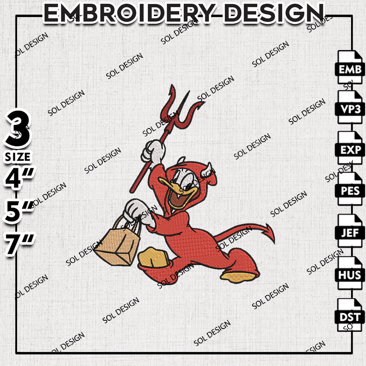 Demon Donald Duck Halloween Embroidery Designs, Disney Halloween Embroidery Files, Trick Or Treat Embroidery, Spooky Machine Embroidery Design, Digital Download