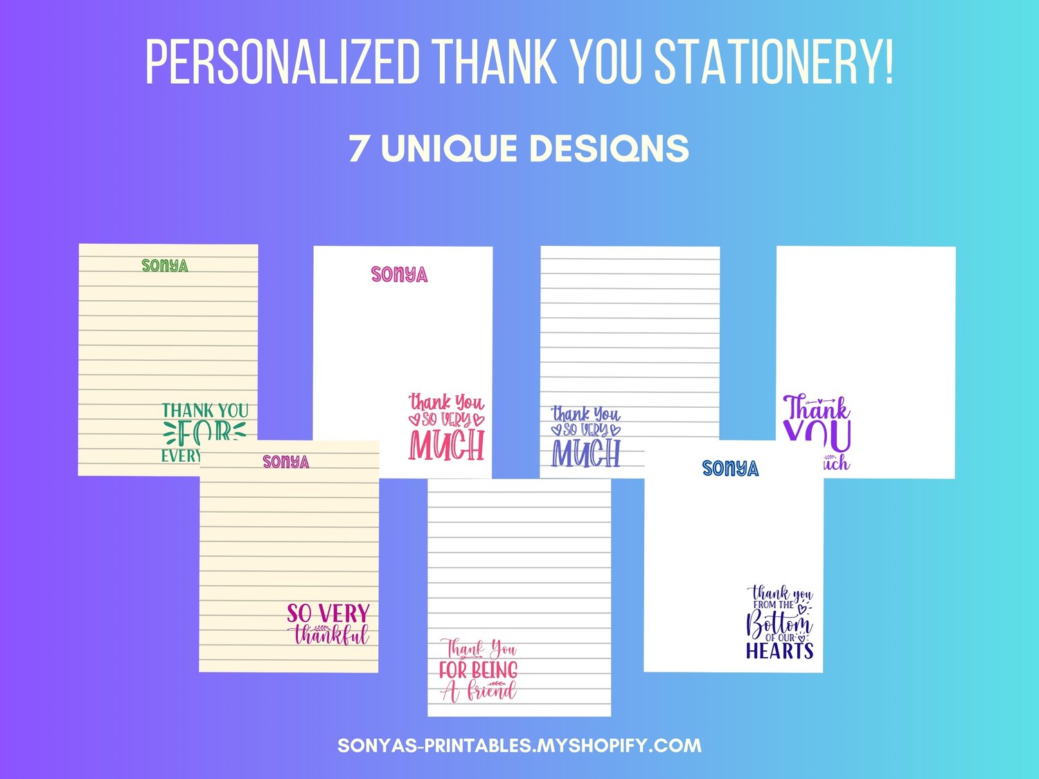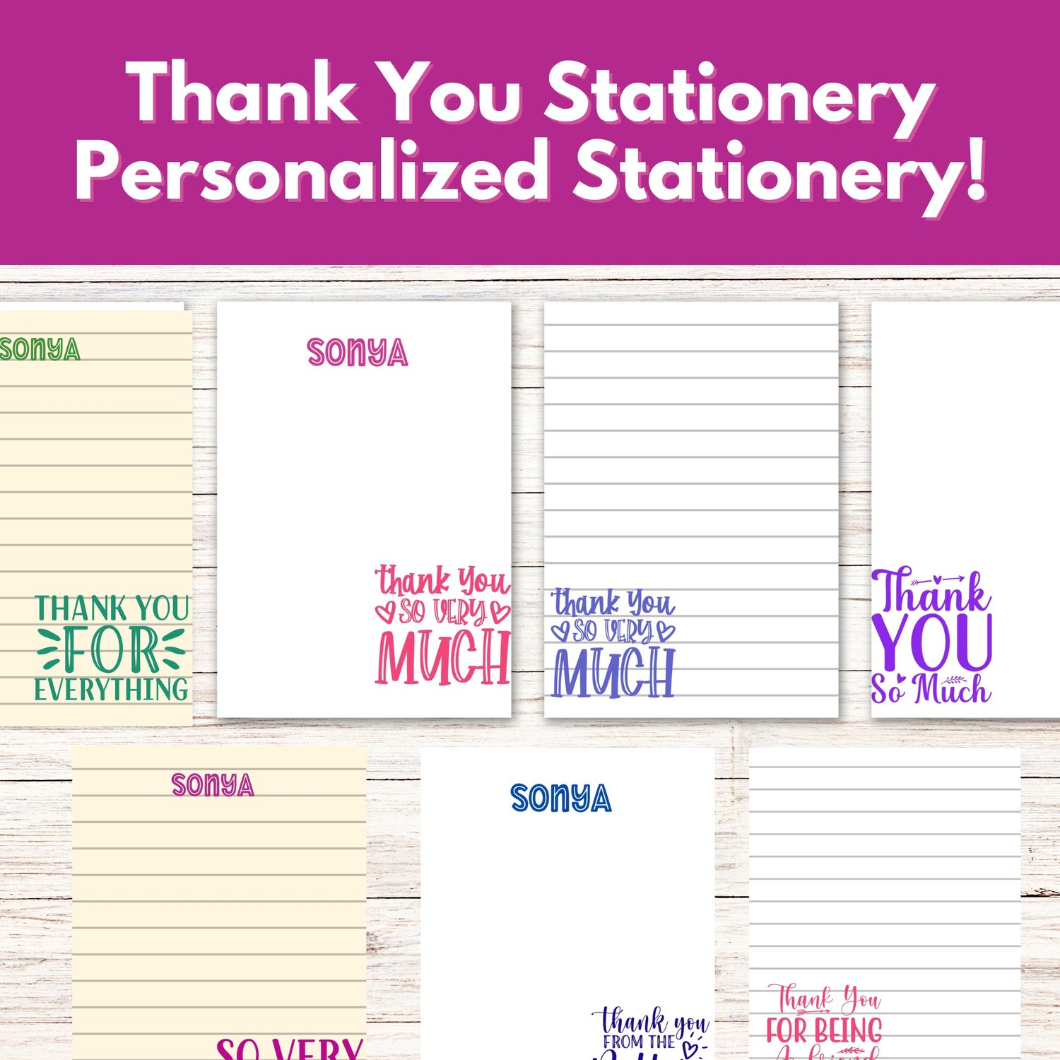 Printable, Personalized "Thank You" Stationery | Printable "Thank You" Note Paper | Personalized "Thank You" Writing Paper