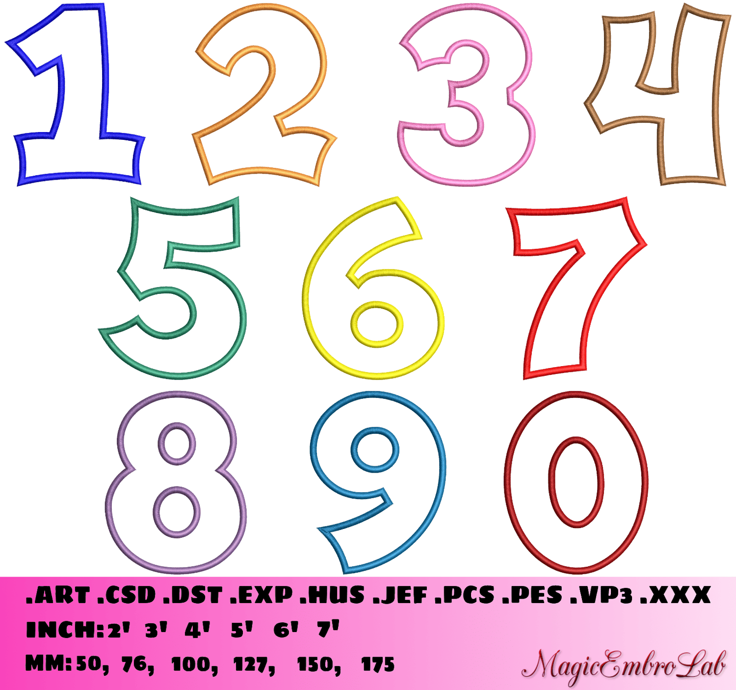 APPLIQUE Numbers, Rounded Birthday Numbers Embroidery Design, 6 sizes, Instant Download