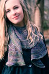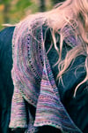 Rondelay is a one-skein, reversible garter shawl constructed from three sequential half rounds or rondels, which grow from cast on stitches using both short rows and strategically placed radial yarnover increases. Each rondel builds upon the previous one, creating a finished semi-circular shape that drapes beautifully as it wraps around the shoulders. Designed to show off the colors of a variegated or hand dyed skein, Rondelay looks equally fantastic in a solid color.