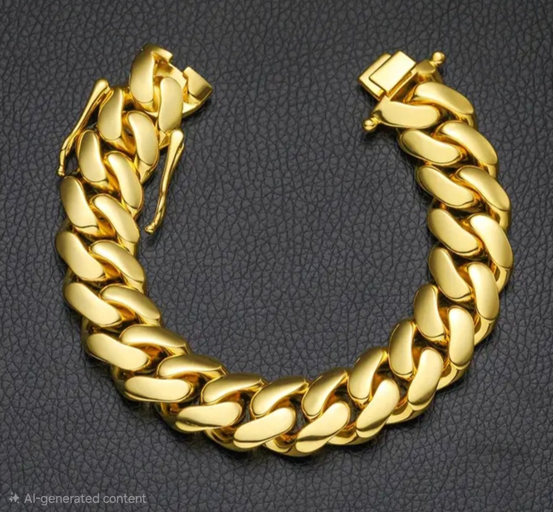 This Cuban link chain bracelet is crafted from high-quality brass and plated with 14K or 18K gold using a five-layer plating process for enhanced resistance to tarnishing and long-lasting brilliance. The substantial, heavyweight feel and versatile design make it suitable for any occasion, from everyday wear to formal events.