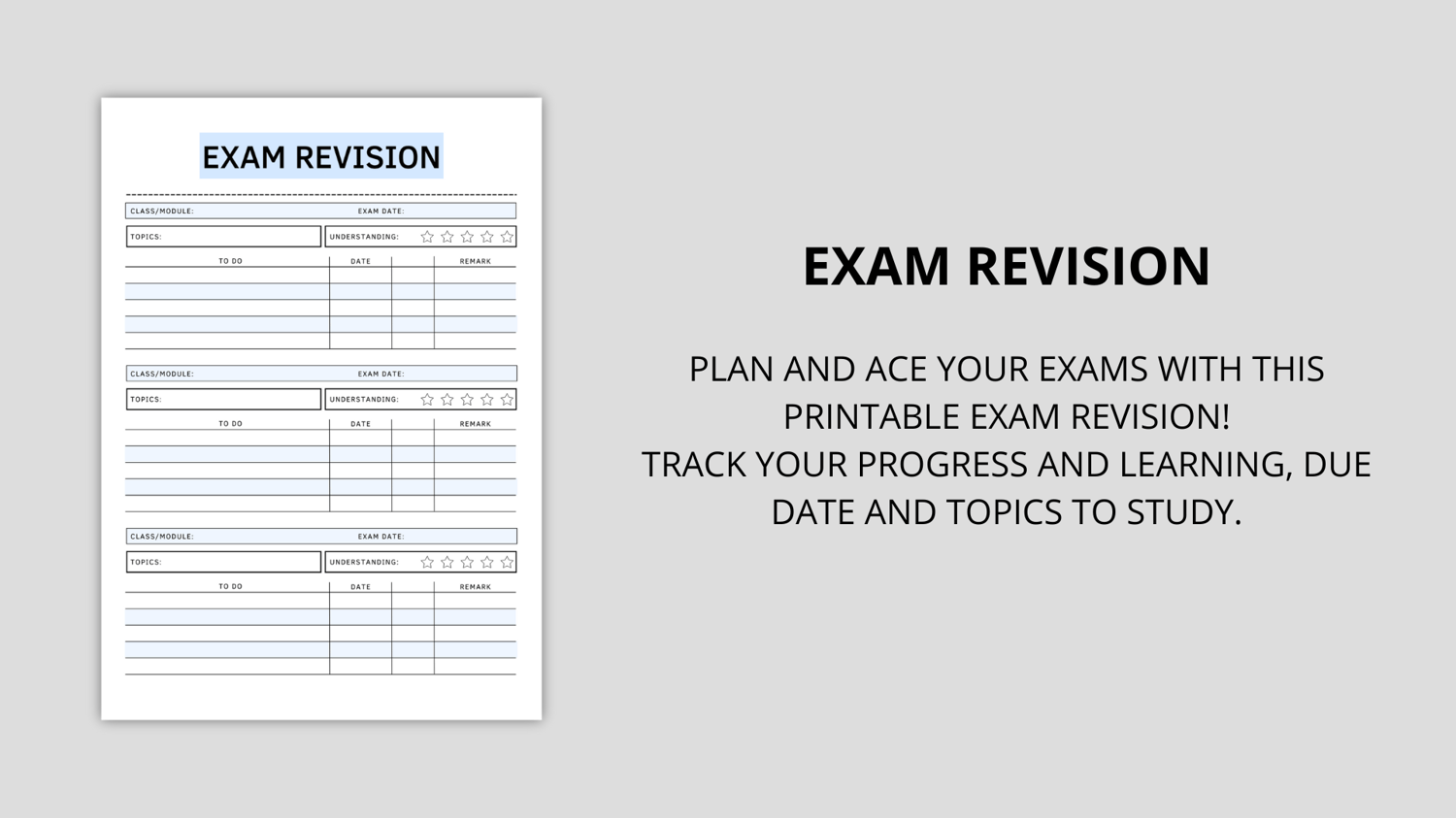 - Exam Revision Sheets – review key topics and prepare effectively for tests