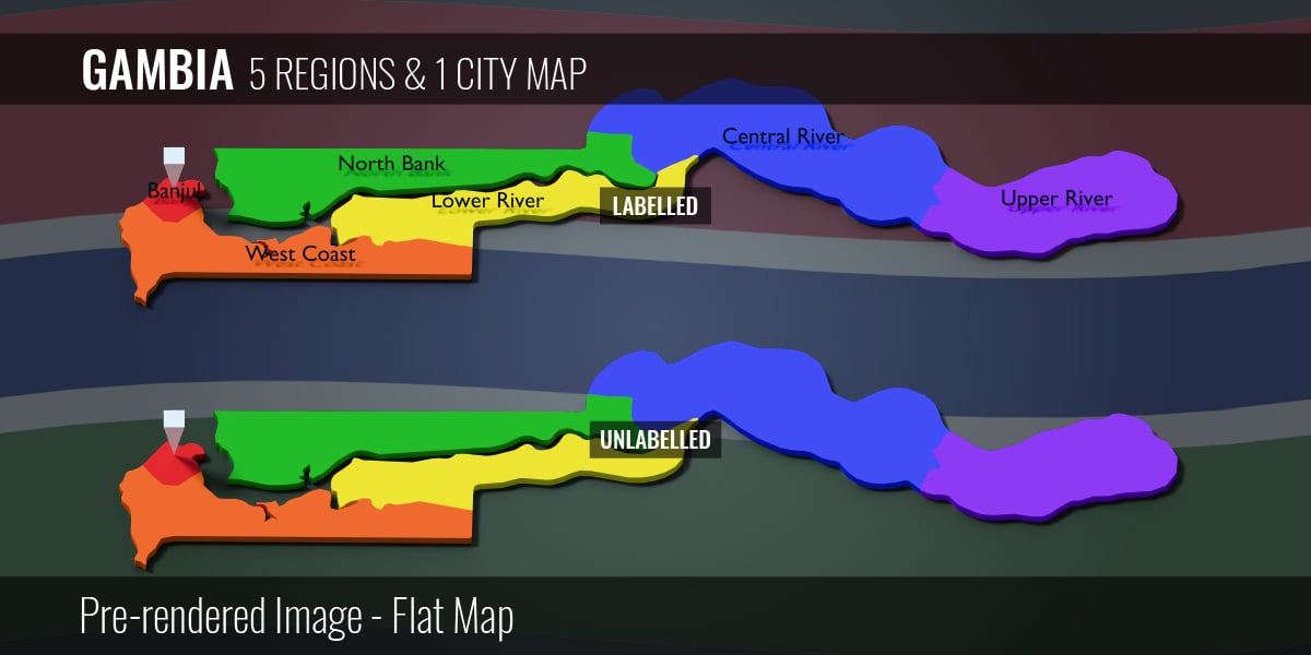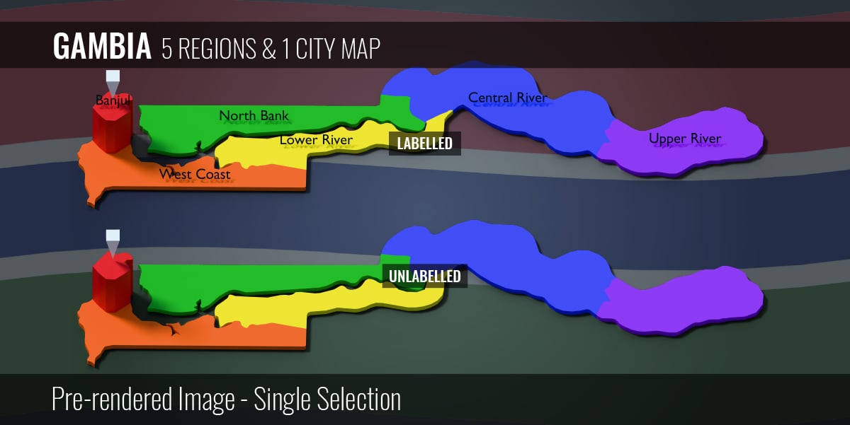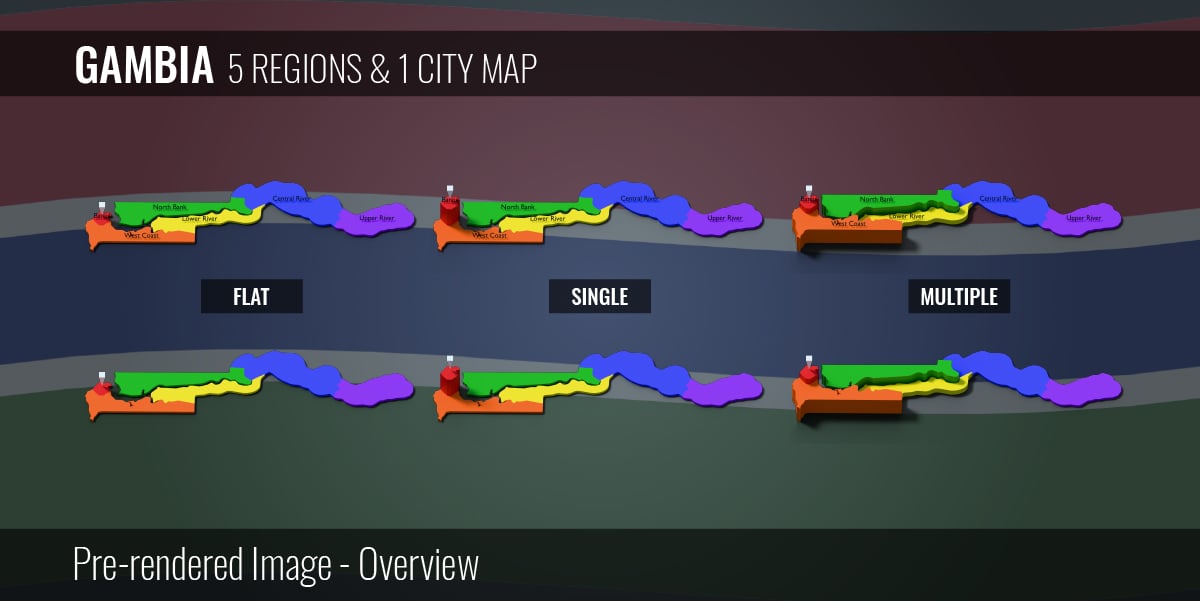 Gambia - 5 Regions & 1 City Map (3D + Pre-rendered Images)