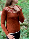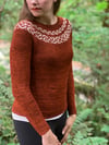 I have wanted to create a colorwork sweater for quite awhile and what could be better than translating cables into a colorwork yoke- it is the best of both worlds. The colorwork will twist and turn as the rounds are worked encircle you with a winding path that was inspired by long hikes. Blending the cables and colorwork, and knitting and hiking to bring you Echor.