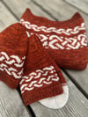 Sample used: Lolodidit, USA Sock; 430 yds/393 m; 4 oz/110 g; MC 3 (3, 4, 4, 5) (5, 6, 7, 7, 7) hanks in Words; CC 1 (1, 1, 1, 1) (1, 1, 1, 1, 1) hank in Yeti