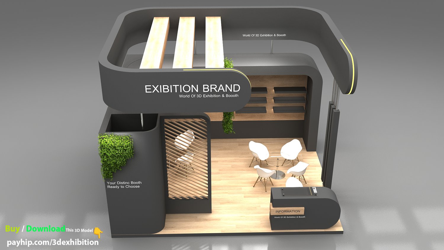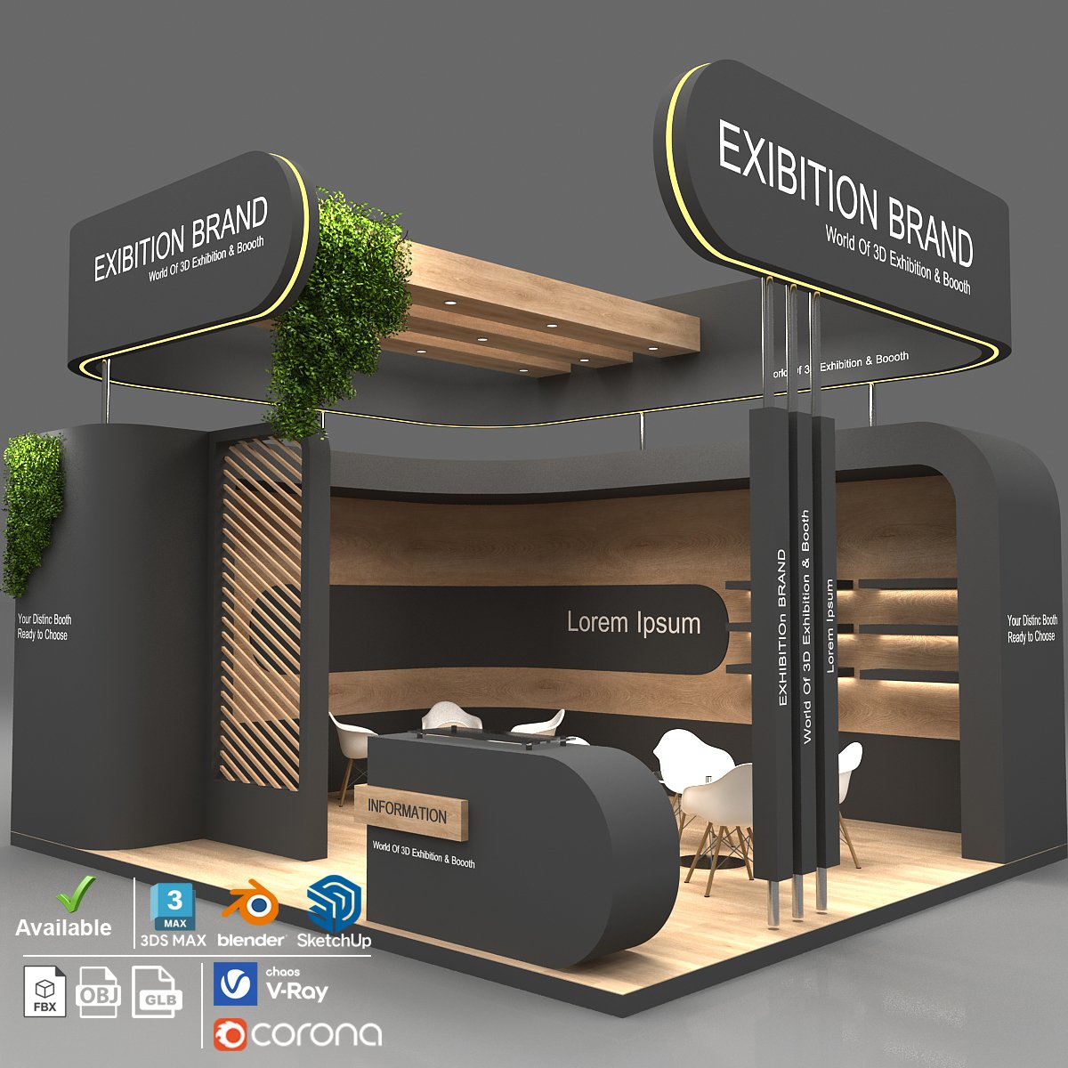 include design all necessary area in Exhibition and Booth Such as Vip and Storage and Counters and also Stand for products
