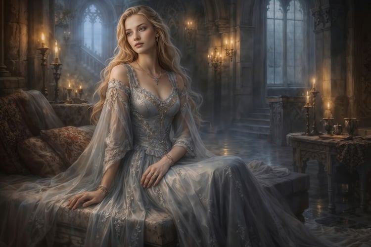 For collectors who love medieval beauty, noble portraiture, and richly detailed historical fantasy, this artwork offers atmosphere, elegance, and timeless appeal.