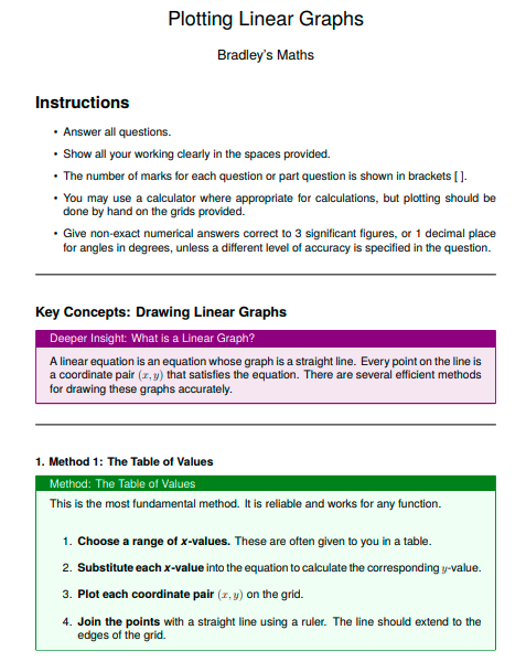- Key Concepts: The opening section of the worksheet tells you what the worksheet contains and how to answer the questions with fully worked methods, deeper insights, pro-tips and how to avoid the typical student errors.