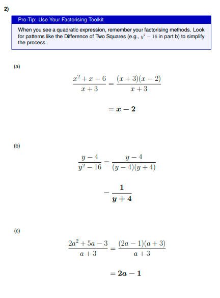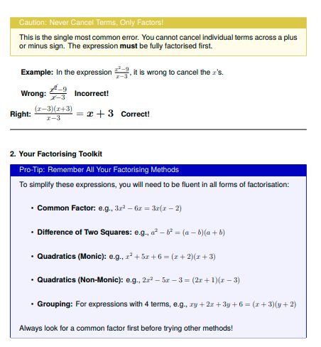 IGCSE Higher Maths: Factorise and Simplify Rational Expressions (Worksheet & Model Answers)