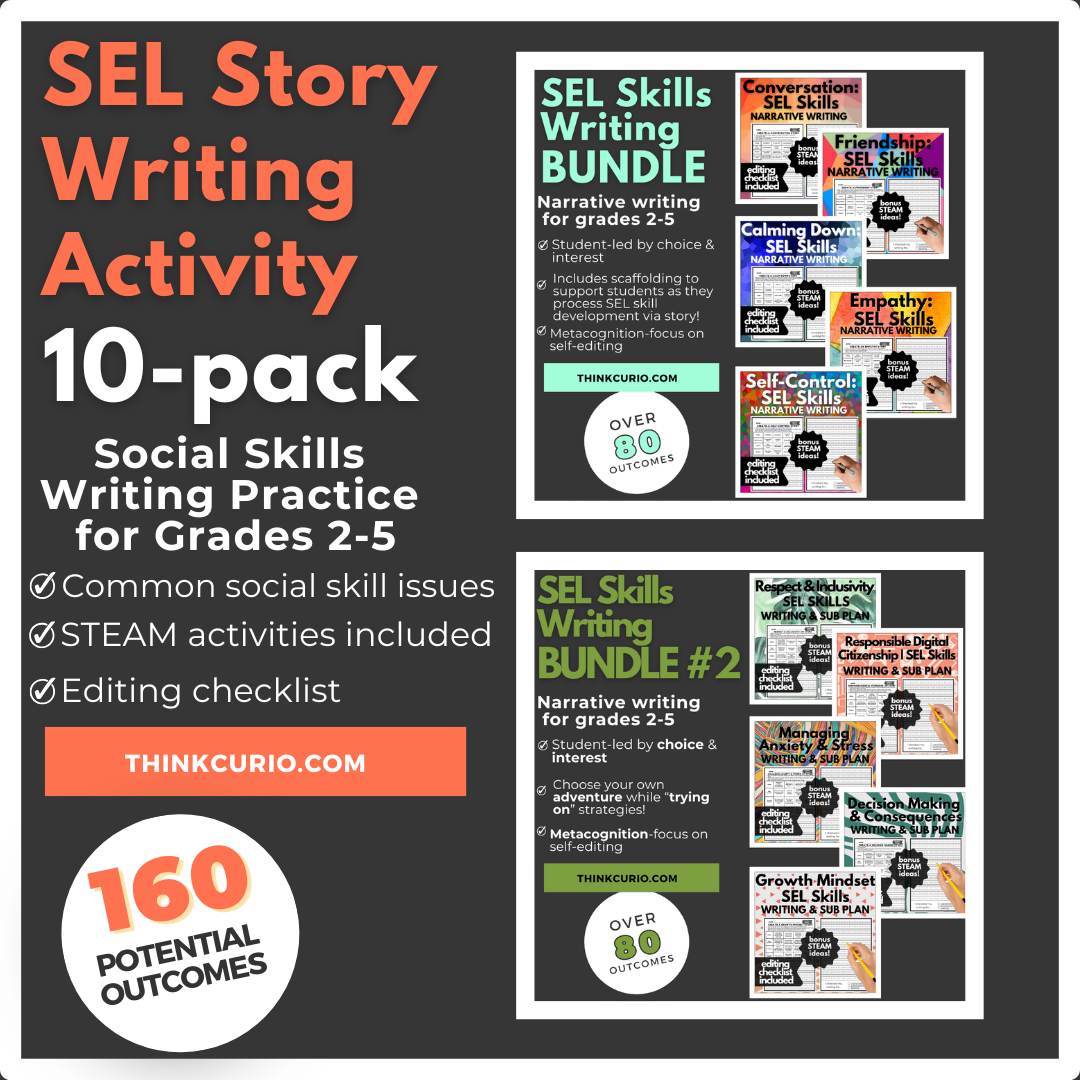 SEL Skills Story Writing Activity (11-PACK) | STEAM Extensions 2nd 3rd 4th 5th Grade, Social & Emotional Learning
