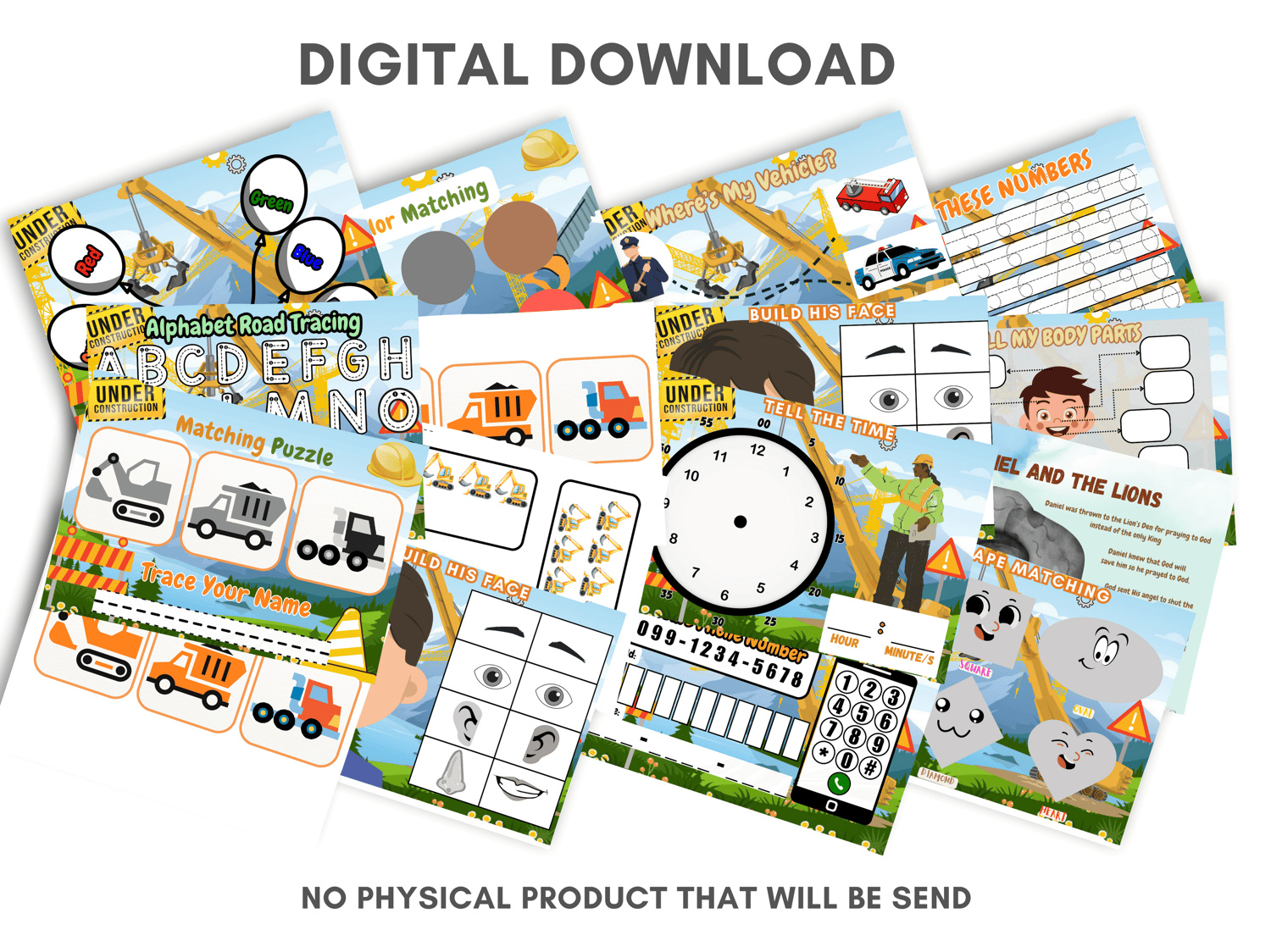 This activity busy book includes a variety of activities that are perfect for toddlers and kids, all themed around their favorite building constrution.