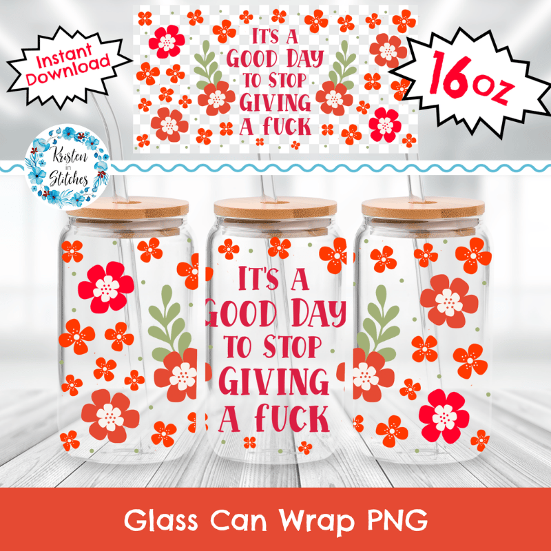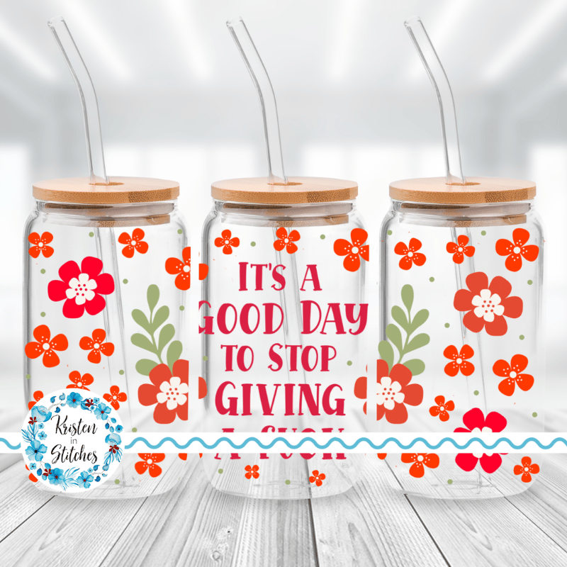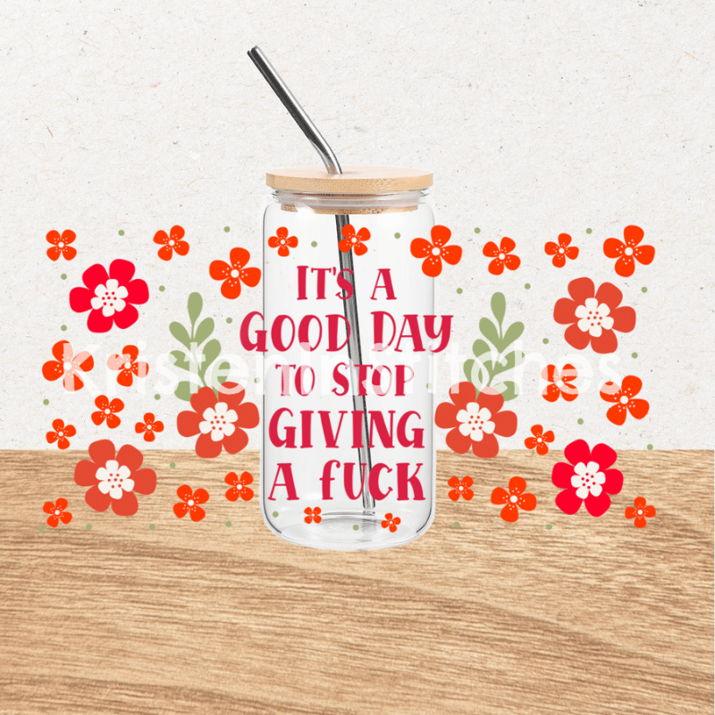 It's a Good Day to Stop Giving a Fuck Glass Can Wrap Transparent Cup PNG, Pretty Floral Profanities