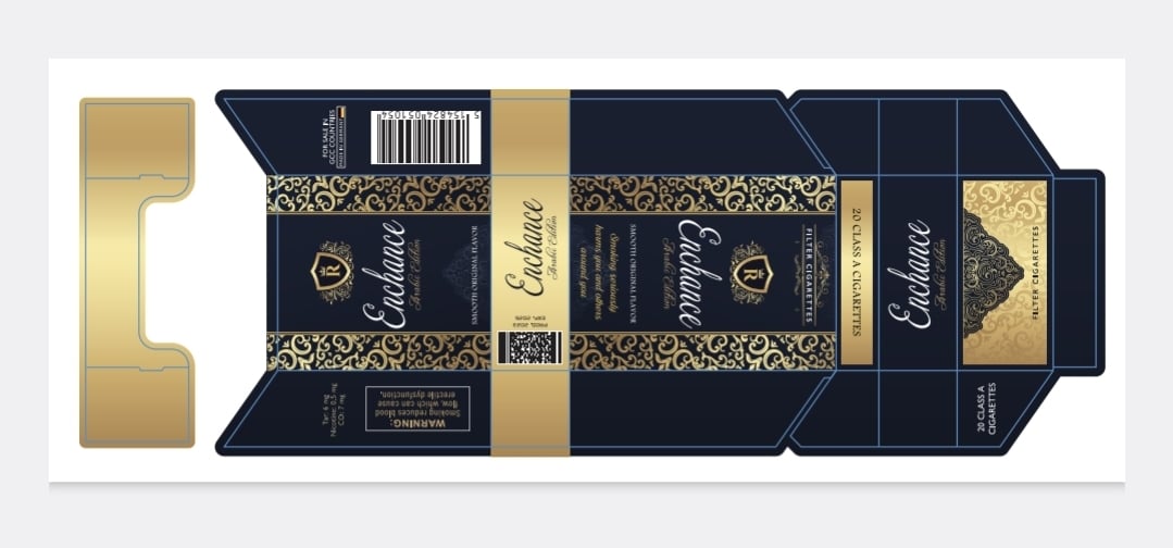 Create professional, eye-catching cigarette packaging with this premium design template. Perfect for designers, branding agencies, or entrepreneurs developing a mock tobacco brand for concept work, personal portfolios, or artistic use.
