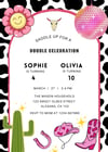 Groovy Cowgirl Double Birthday Invitation, Cowgirl Joint Birthday Invite, Siblings Rodeo Party, Kid Western Birthday Double Celebration