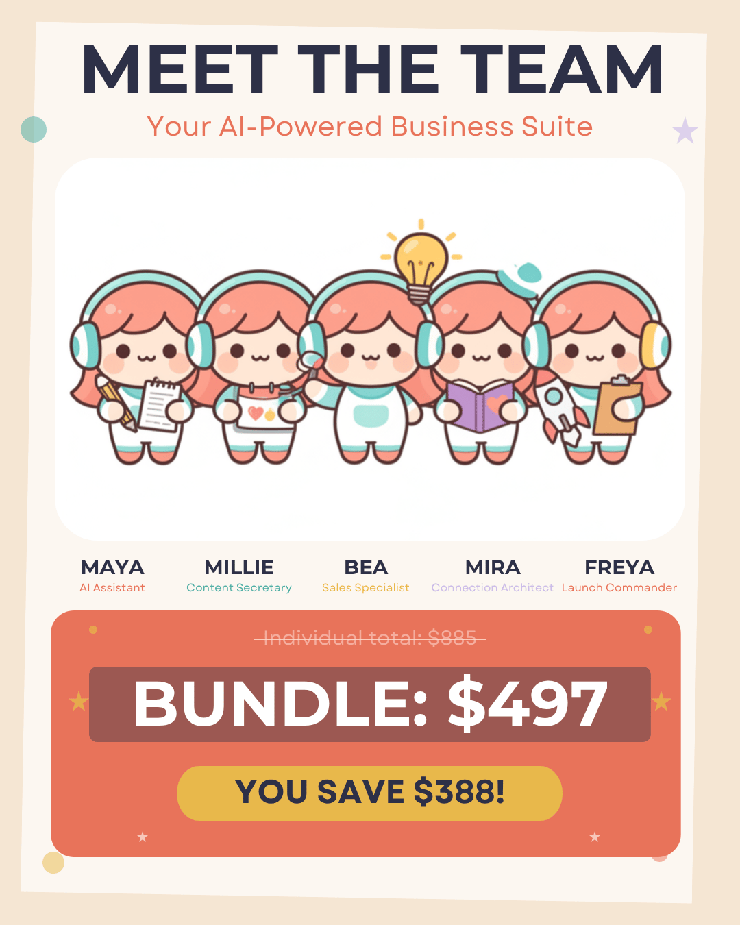The Comple Clarity Suite of. your hardworking AI Assistants. Brown and cream and gold layout. Huge savings!
