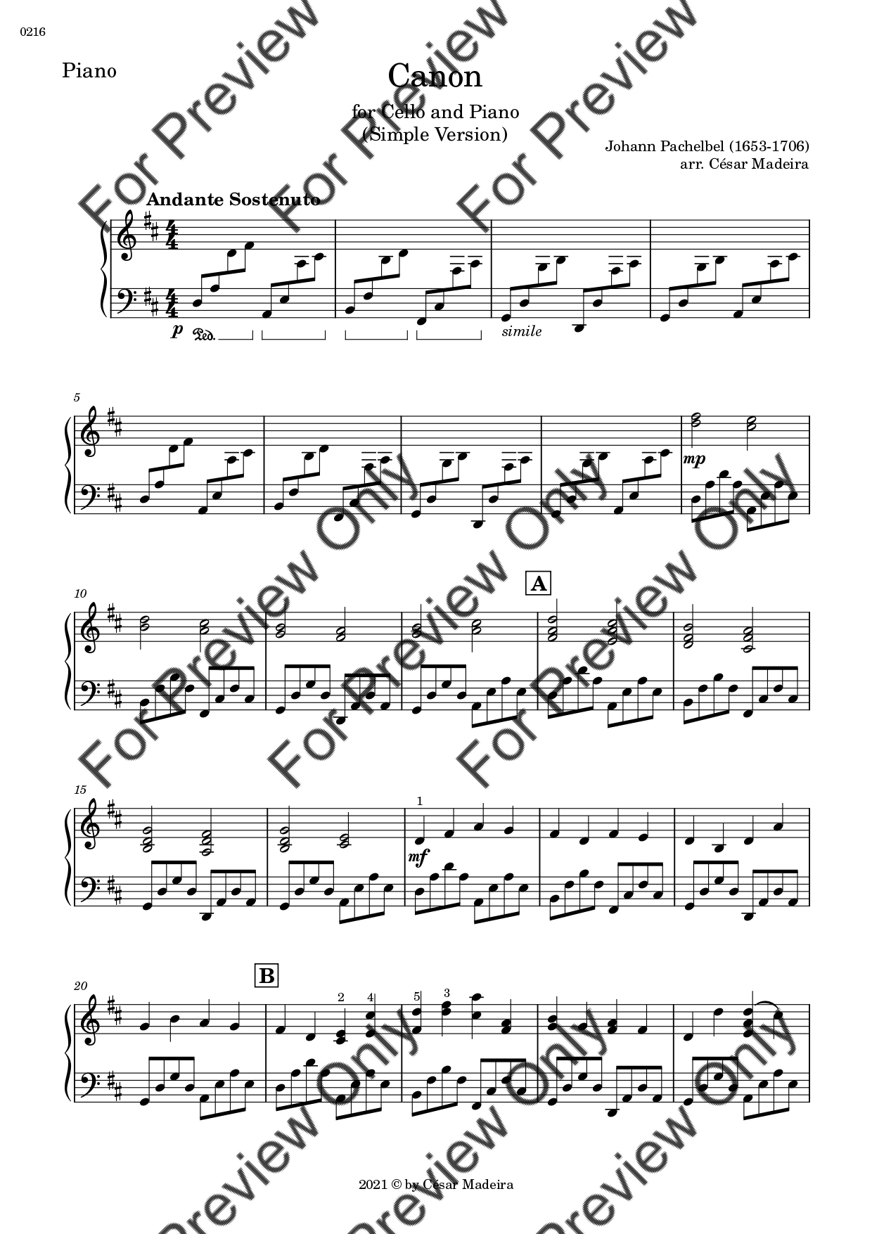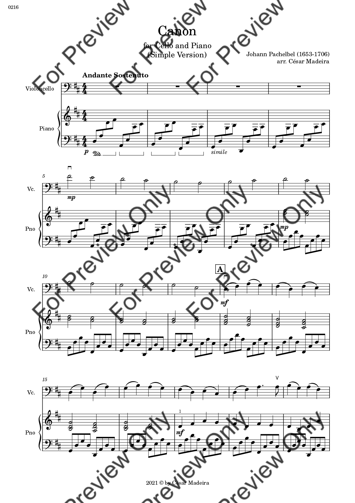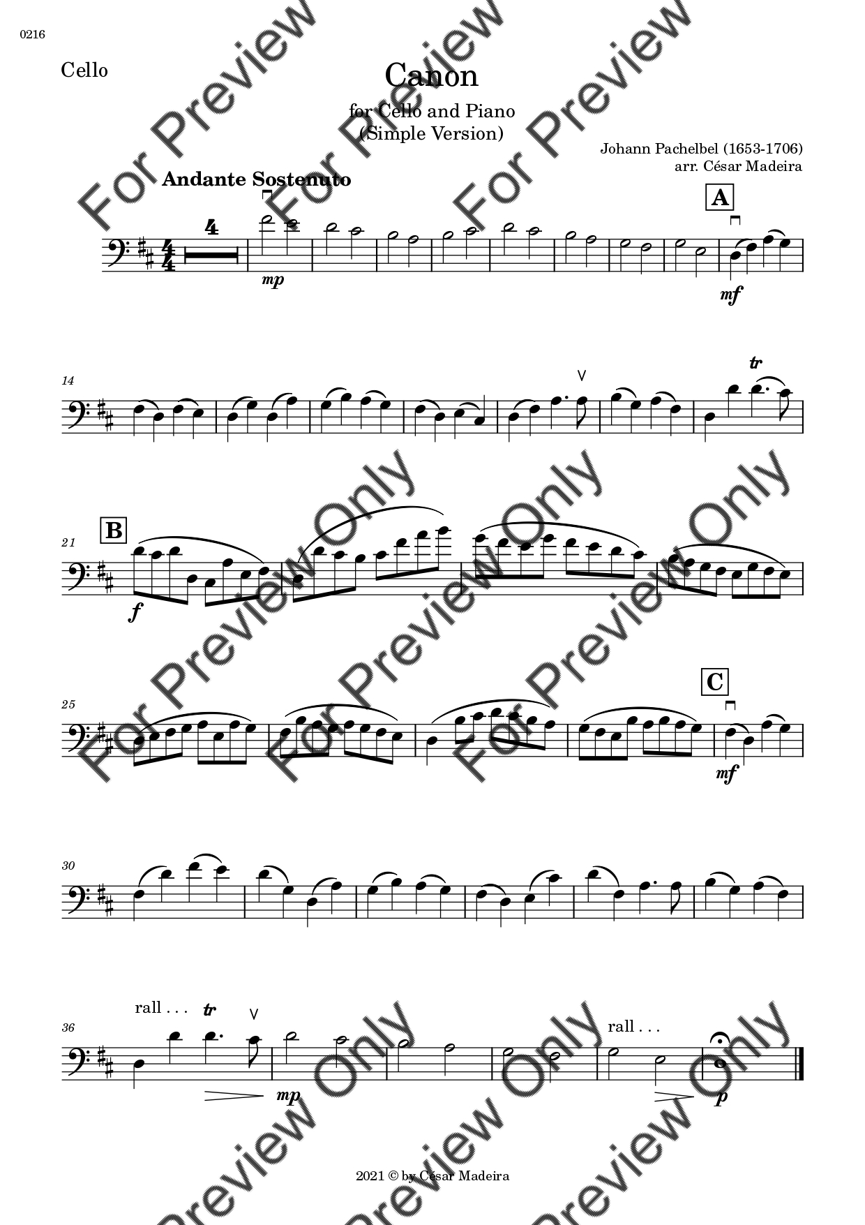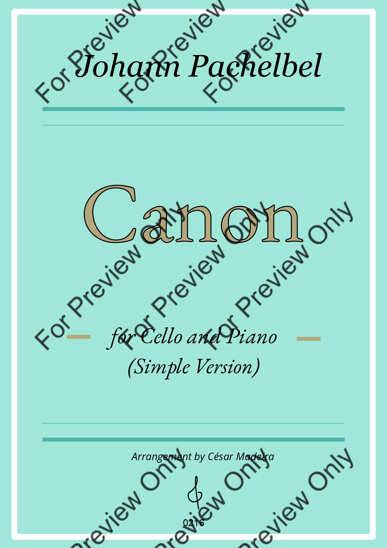 Canon in D by Johann Pachelbel. Arrangement for Easy Violoncello and Piano. With Full Score and Individual Parts. Have fun!