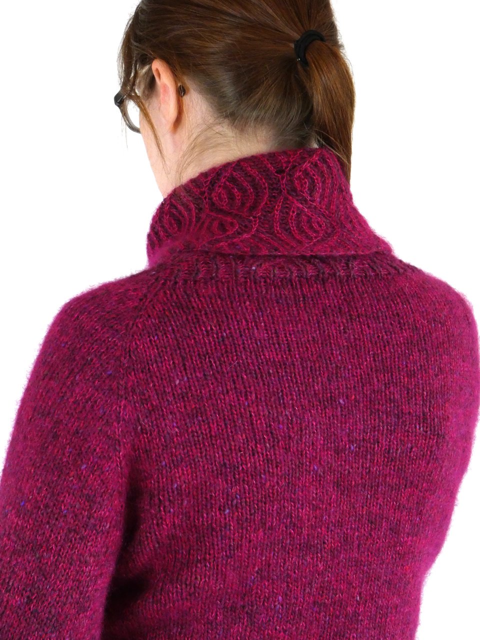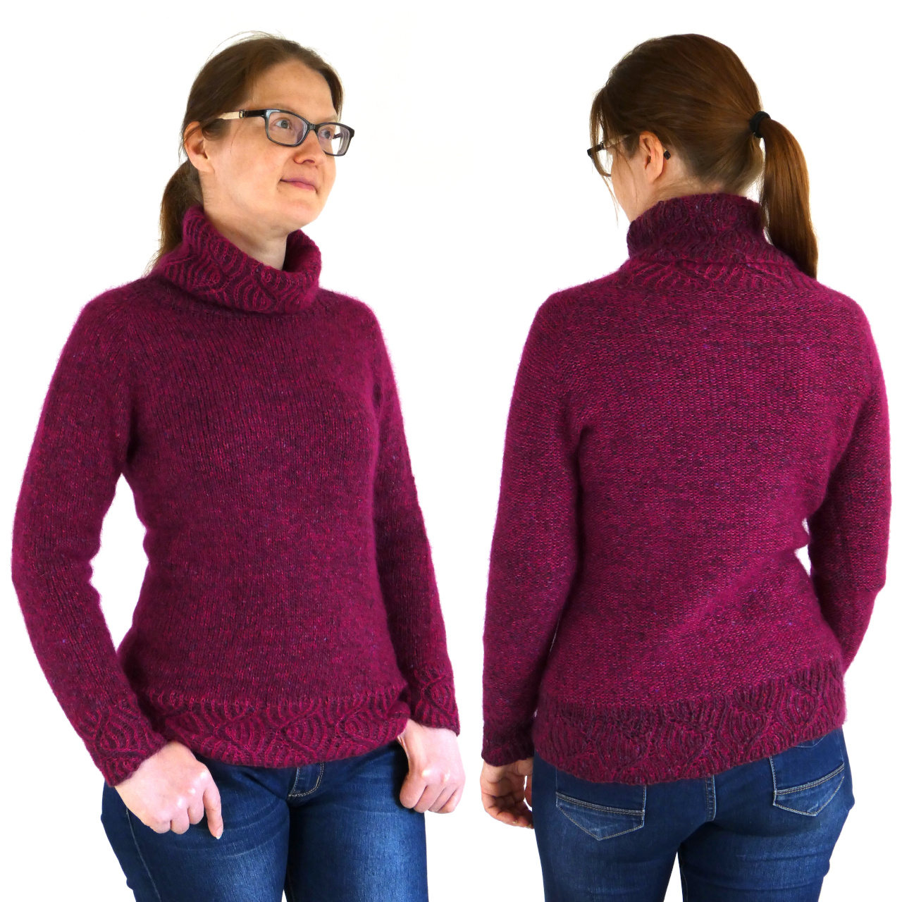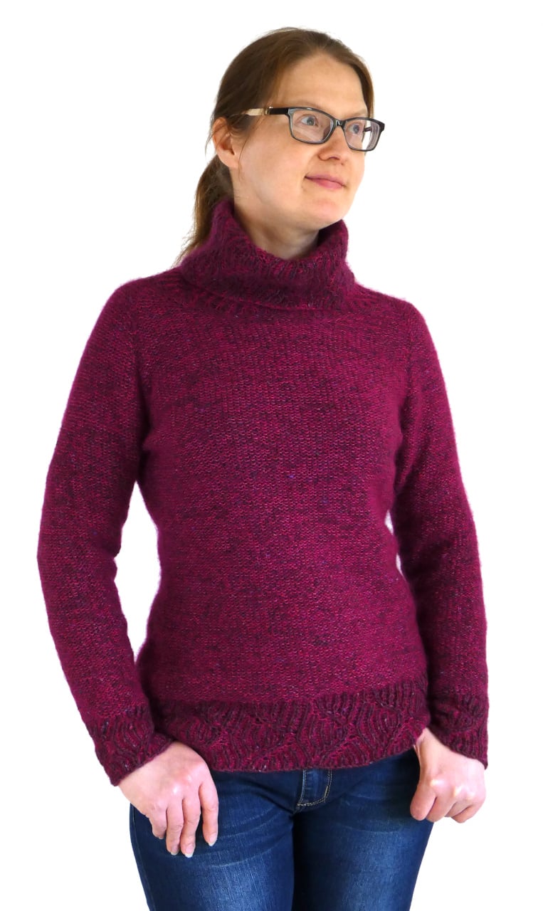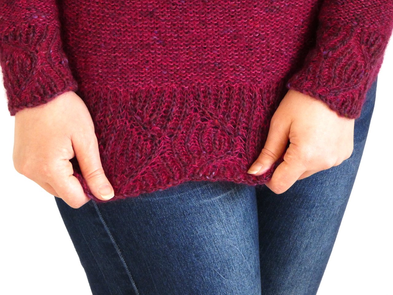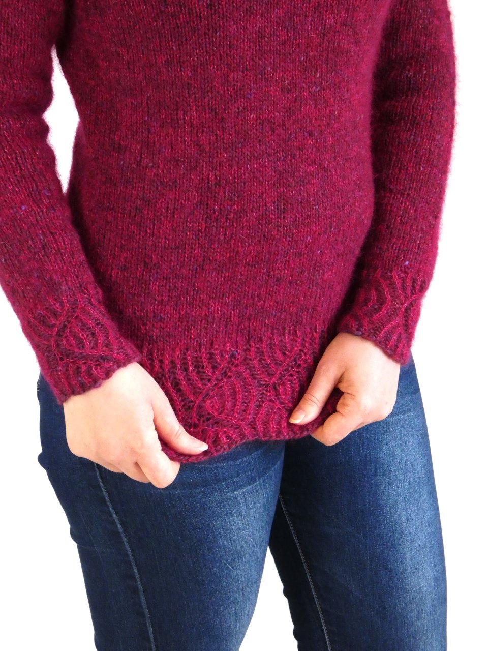The pattern includes optional bust and waist shaping to customize the garment fit to your body shape. For a more relaxed silhouette the body can also be knit straight, omitting all shaping.