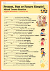 Practice Past, Present, and Future Simple Tenses with this easy-to-use English grammar worksheet — perfect for A1–A2 level learners!