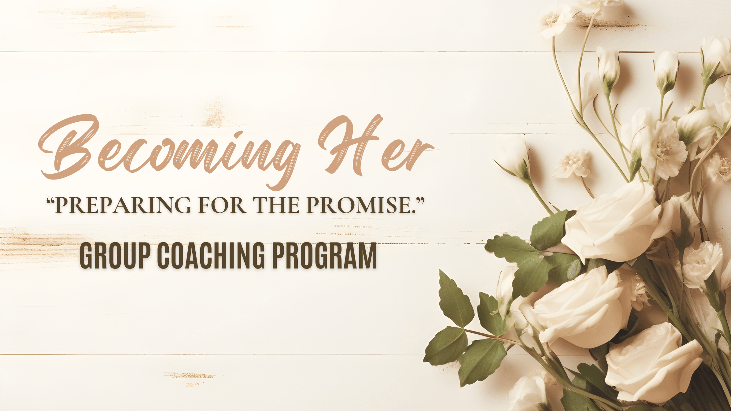 Becoming Her: Preparing for the Promise is a 3-month transformational group coaching program for single women who are ready to align their mindset, lifestyle, and heart with the kind of relationship that honors God and honors who they are.