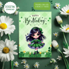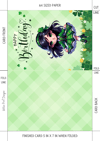 Celebrate a special birthday with our charming digital download greeting card featuring a delightful dark-haired Irish girl dancing. Dressed in vibrant green hues, she adds a touch of Irish spirit to your celebration. The card is designed to print to a standard 5 inches by 7 inches size, making it perfect for home printing.